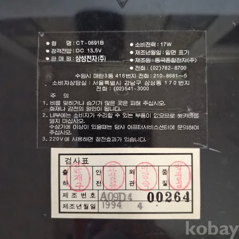 [희귀 근대사 자료] SAMSUNG ‘엑셀런트 5’ CT-0691B型 5”칼라 텔레비전 AM/FM 라디오