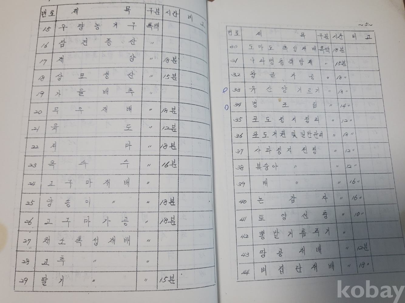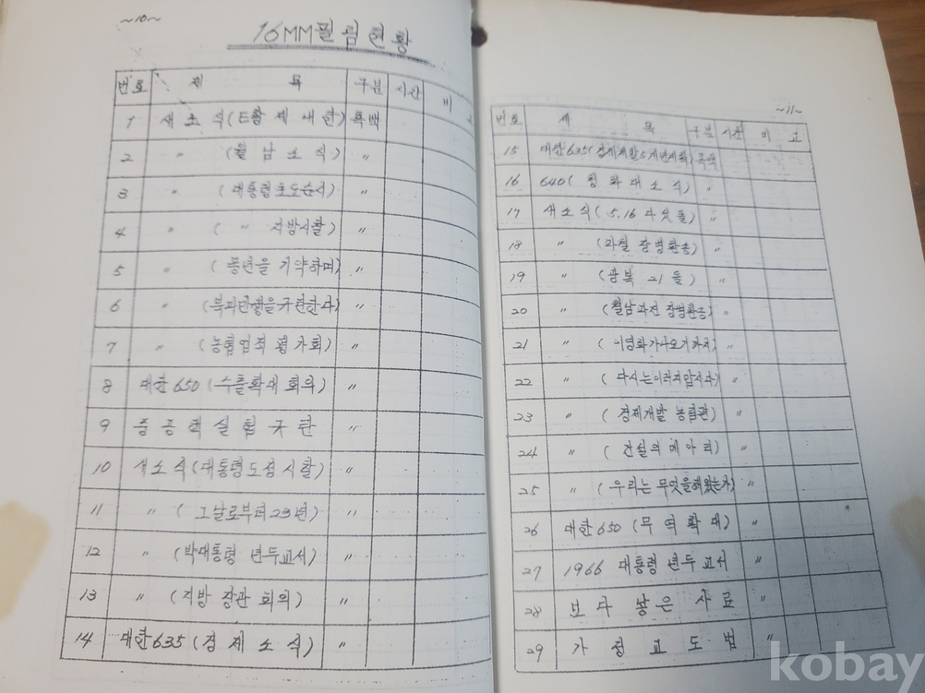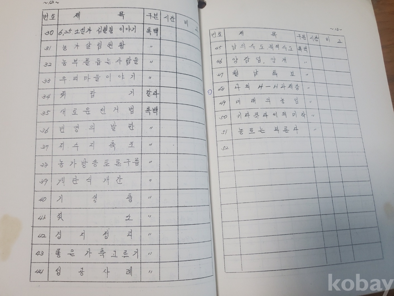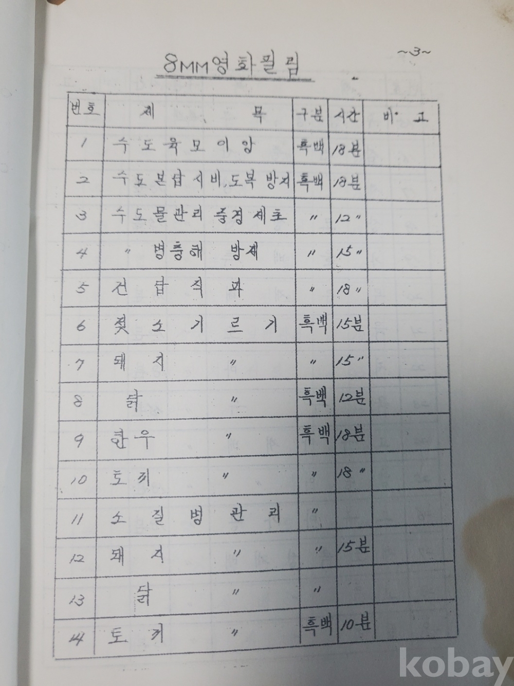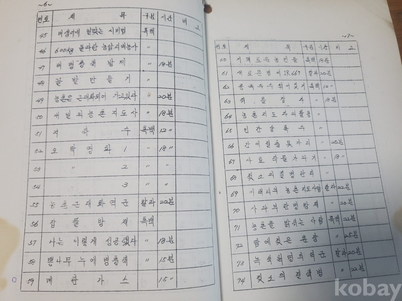 1. 농촌지도교재용 필름 목록(영화필림. 필림 스트립), 경상북도 농촌진흥원, 1960년대 추정, 20쪽, 상태 상, 사진 참조