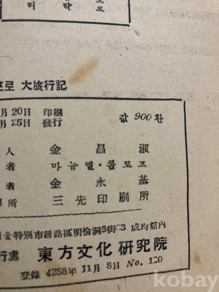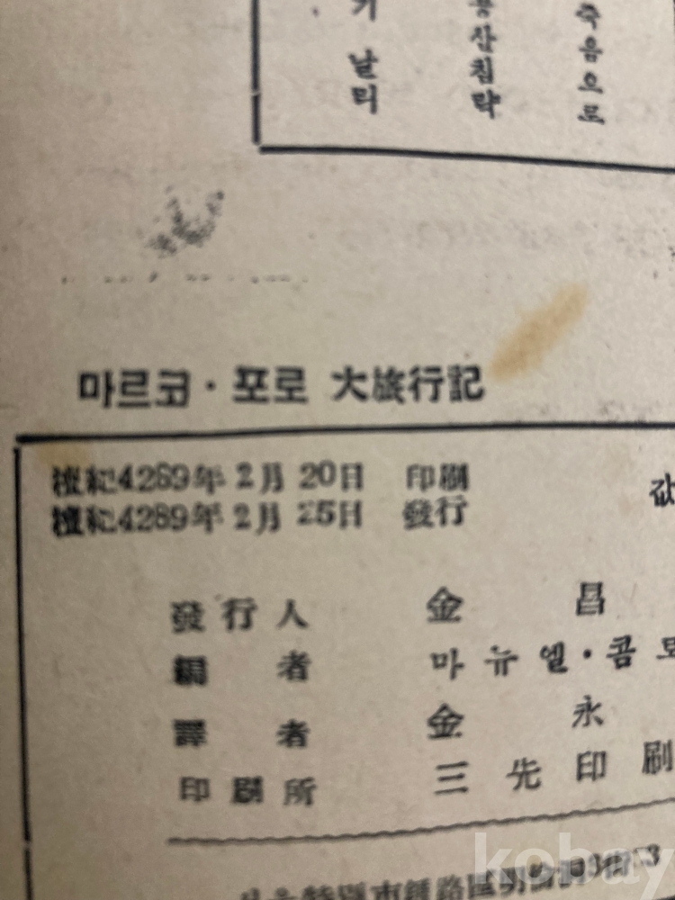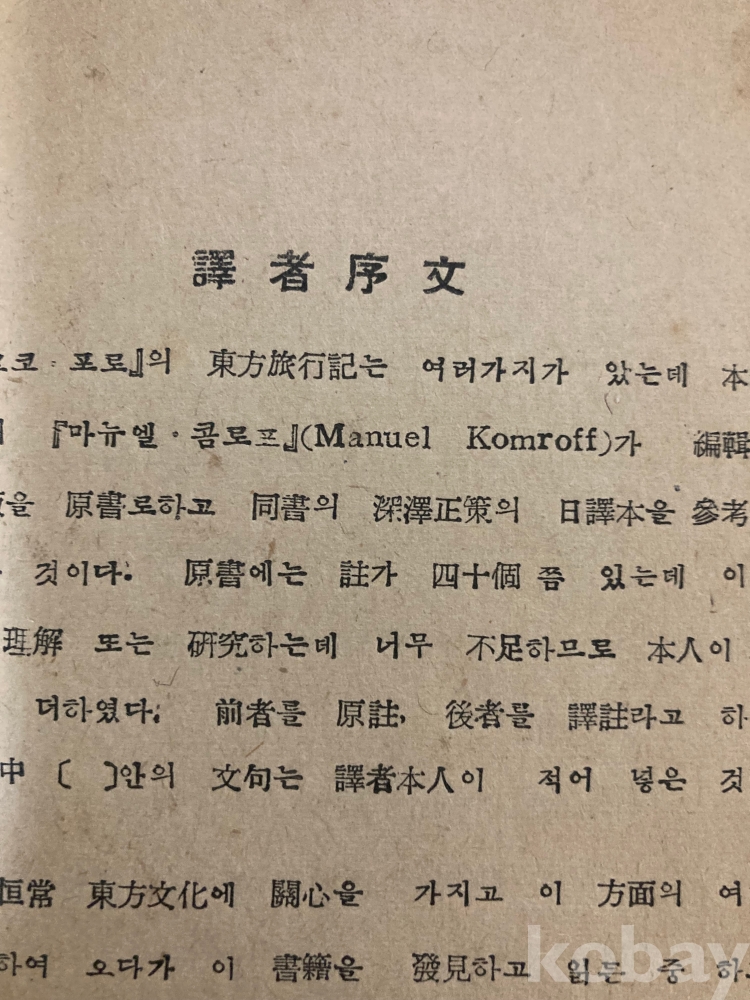 1956년 동방문화연구원에서 간행된 『마르코·포로 대여행기(동방견문록)』 한국어 번역본입니다.