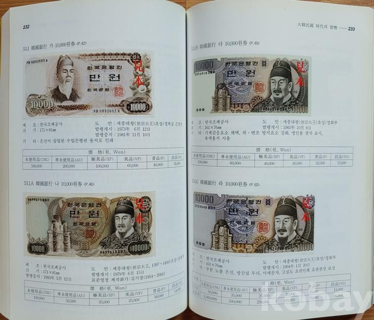 고려시대부터 현재까지 모든 화폐가 사진과 함께 가격이 평가 되어 있습니다.