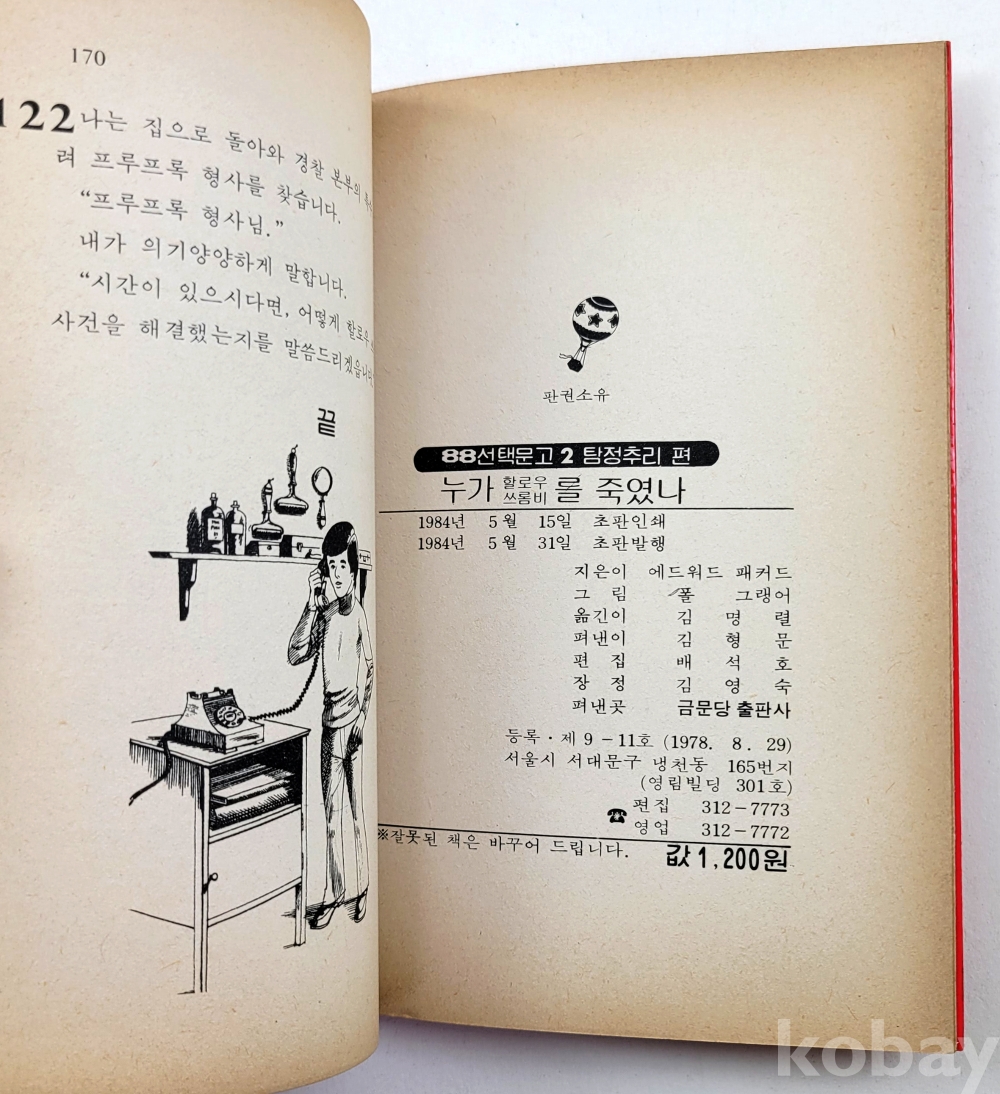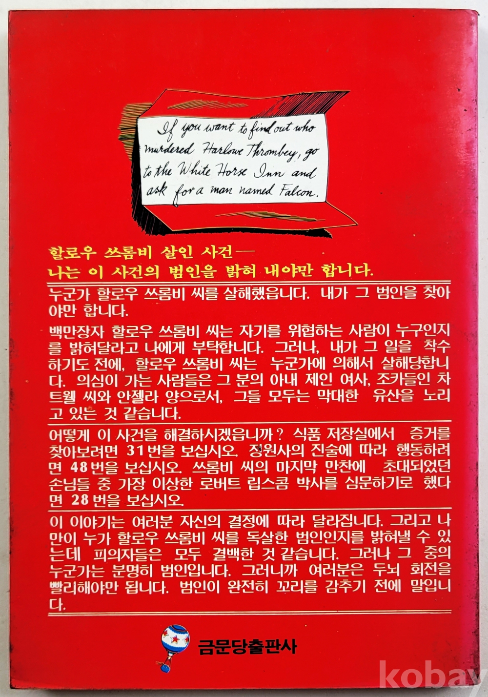 물 품 명 | 누가 할로우 쓰롬비를 죽였나 / 88선택문고(2) 탐정추리 편 / 1984년 초판 / 금문당출판사 |