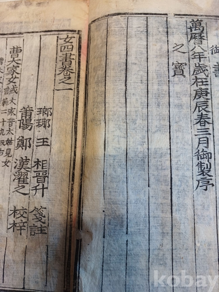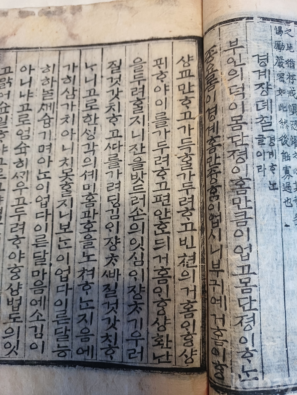 상태 a급이나 미미한 습먹은흔적 보임 신종황제어제 여계 序 책머리발문에 御書 만력8년 어제서 지보라되있는건 초간본 발문 숭정후280년정미송병순근서 가 본책발행 년도입니다 한문에 언문해지를달아 여자가 쉽게볼수있도록 간행된 귀한서책 입니다