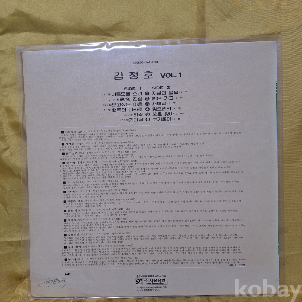 | 자켓상태 | EX : 약간의 마모, 모서리 찢김 존재 | 음반상태 | EX : 재생에 영향 없는 가벼운 기스 존재 | 발매정보 | 알수없음 | 가사지여부 | 무 |