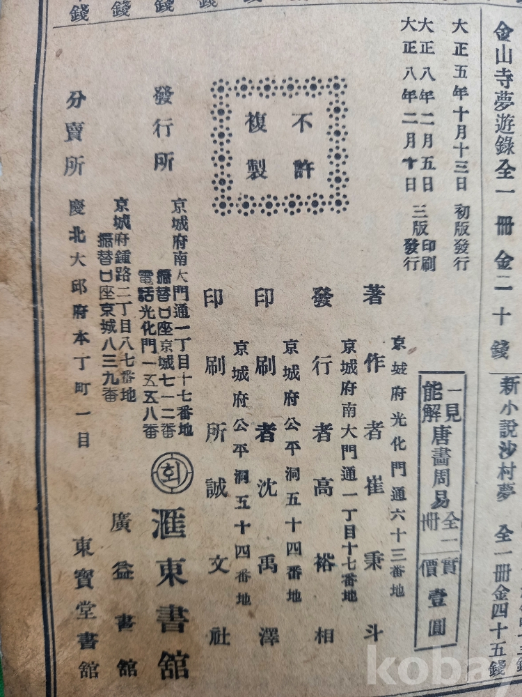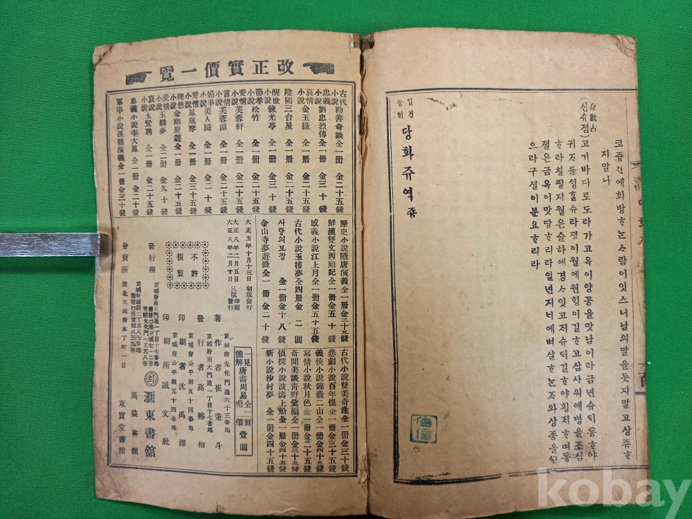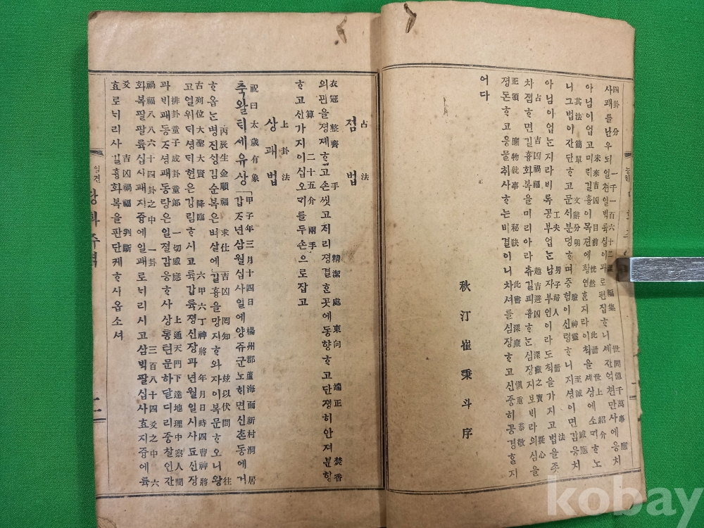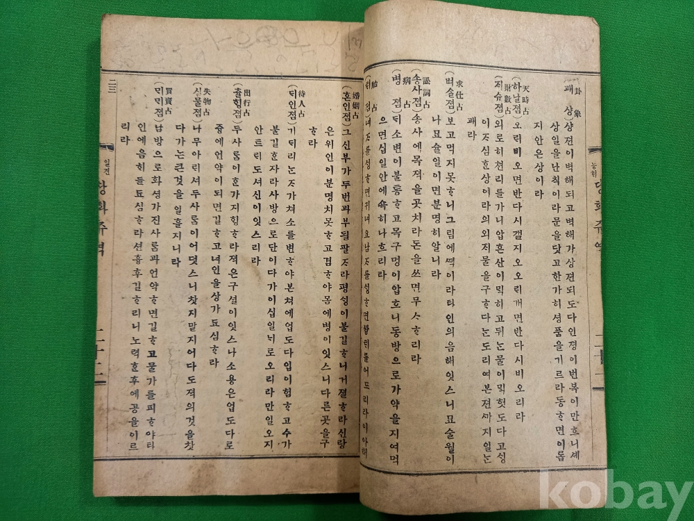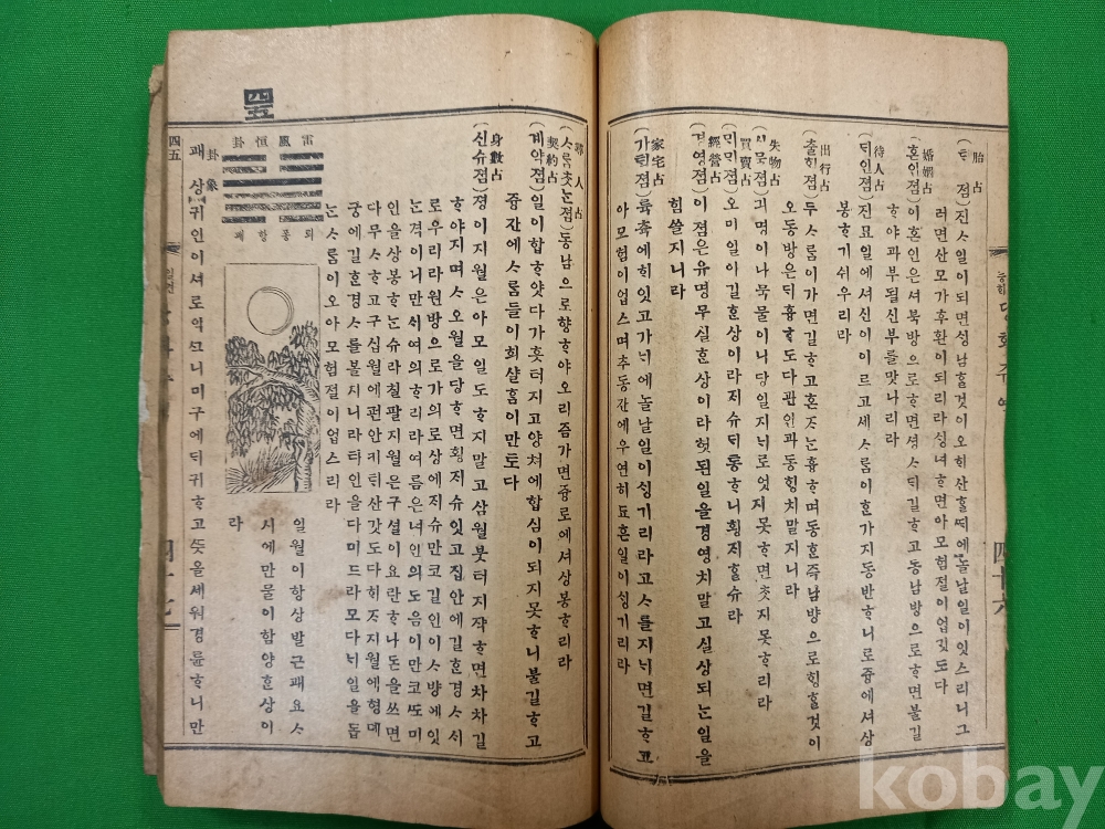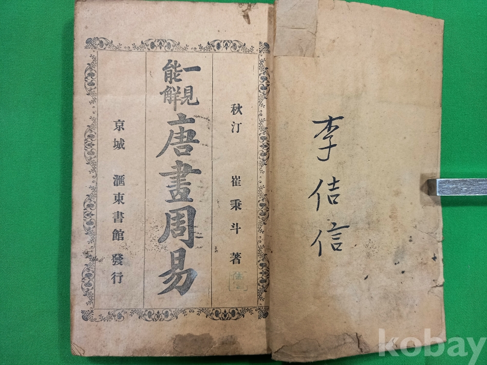 이 책은 최병두(崔秉斗)가 저술하고 1919년 경성 회동서관(京城 滙東書館)에서 발행한 『일견능해 당화주역(一見能解 唐畵周易)』입니다.주역의 각 괘와 효의 의미를 그림과 함께 설명하여 누구나 쉽게 이해할 수 있도록 구성된 역학 서적입니다.