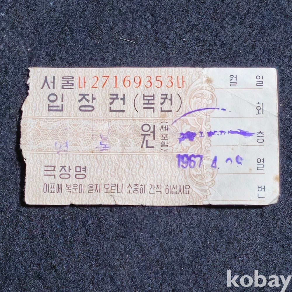 (((근현대사자료/영화자료))) 1960년대 극장 입장권 (복권)(40원) (1967년)(명동극장)
