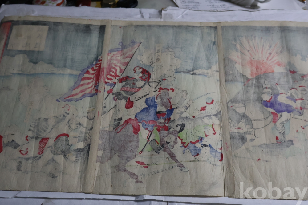 청일 전쟁 3 매 연속 목판화 임니다 당시의 전쟁을 알린 명물 임니다 세월의 흔적을 가진 명화 종군화가 고구니마사 임니다