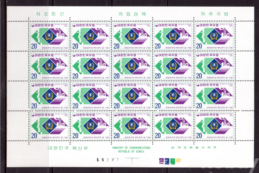 (한국전지) 1976.4.3 창설 8주년 예비군의 날 sheet of 20 MNH