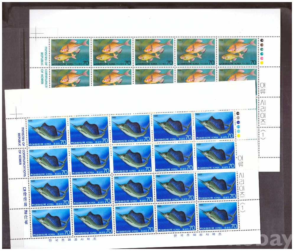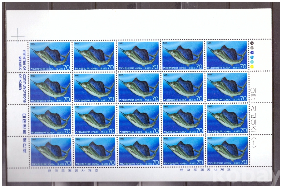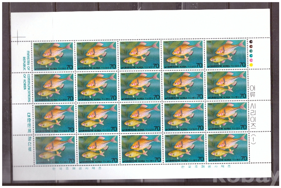 (한국전지) 1985.5.30 어류시리즈(제1집) 2완 sheet of 20 MNH