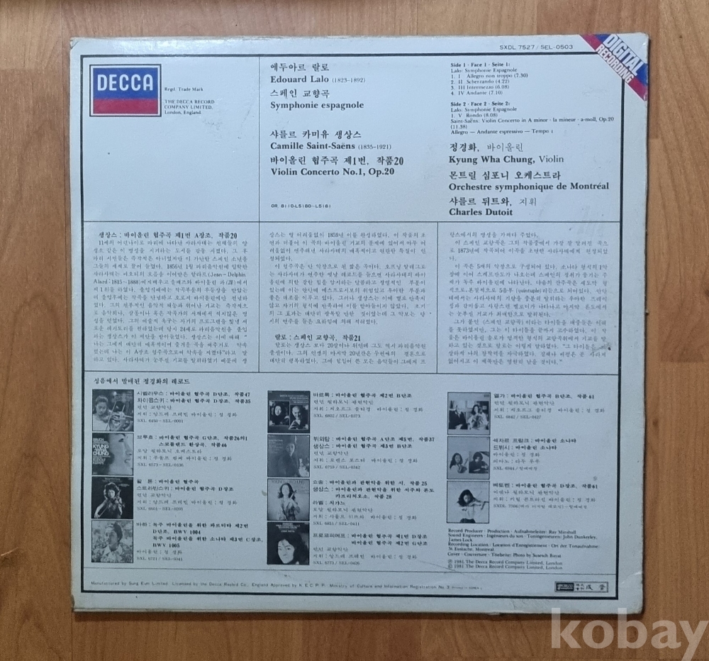 (개봉 엘피) 정경화 (LALO;스페인교향곡,SAINT-SAENS;바이올린협주곡 제1번)-몬트릴 심포니/DUTOIT