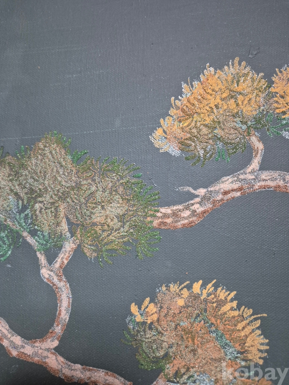 5.작품재료: 캔버스에 혼합재료(분채+석채)