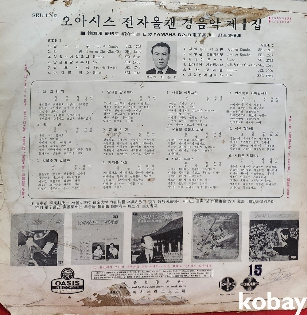 오아시스 전자올겐 경음악 1집 레코드 판입니다 "임그리워 서산갯마을 " 입니다