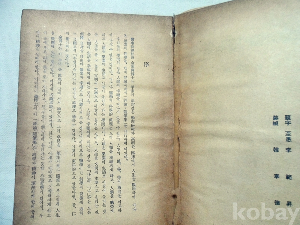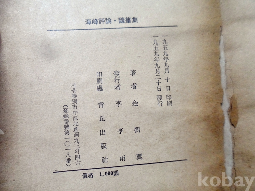 1959년 海峰評論 隨筆集~김형익 초판 저자 싸인