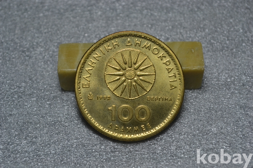" 광택이 살아있는 귀한 극미품이상~ 귀한종류(1992년도 고액권 100드라크메스(Drachmes)) ".. " 29 mm 대형 큰지름 ".. " 1992년도 그리스 고액권동전 100드라크메스 황동화 ".. 오래된 1992년도 그리스 100드라크메스 동전 / 도안문양 좋은 보존상태