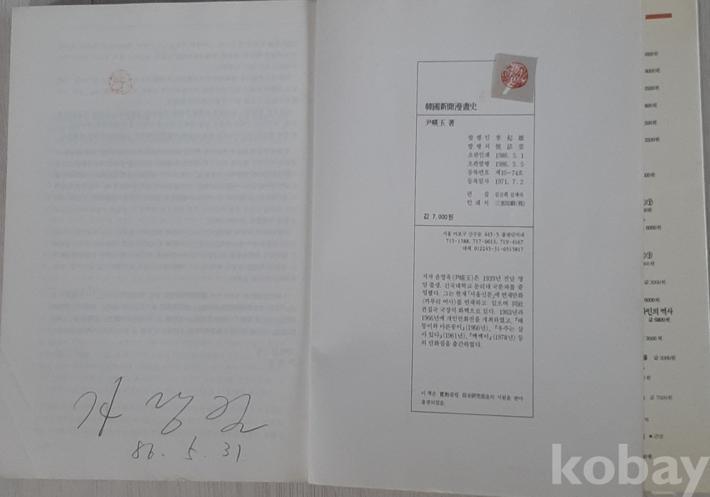 한국신문만화사-윤영옥 저 1986년초판 열화당 발행