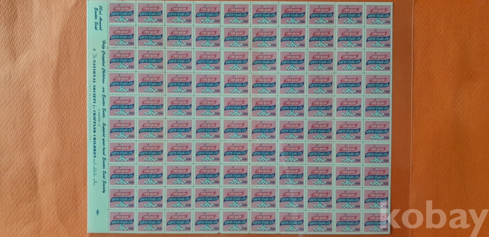 1955년 미국 크리스마스 씰 100매 전지 입니다.