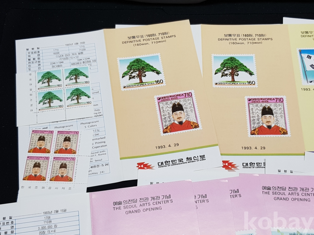 - 1992년 기념우표 시트, 명판, 안내카드 등 모음