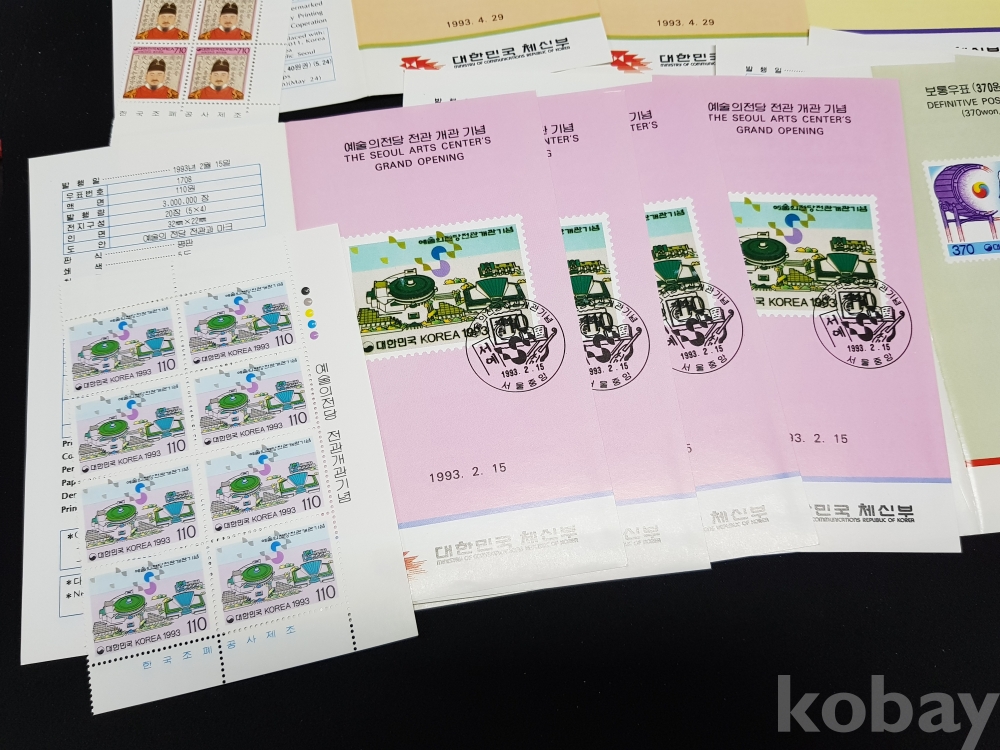 - 금일 한국우표 안내카드, 전지, 시트, 명판, 우표 등의 우취자료들을 경매 중에 있습니다.