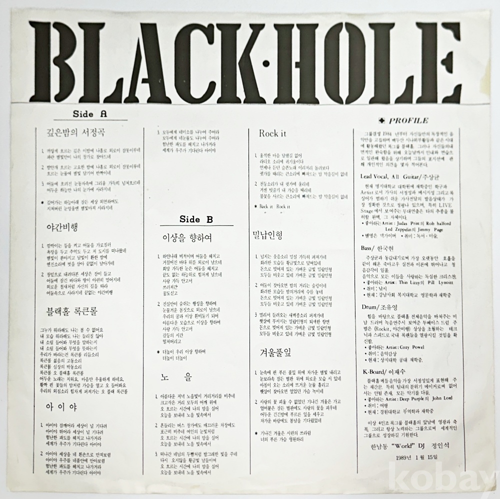 상품명 | (전멤버 사인반) 블랙홀 1집 [ 깊은밤의 서정곡 / 이상을 향하여 ] | ||