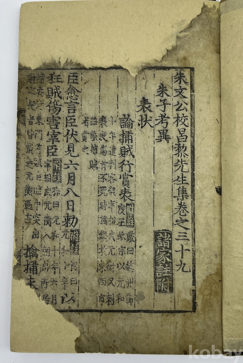 물 품 명 | <취향지가> [23] 1610년 간기, 이항복(李恒福) 발문, 경오자체훈감자번각본 [주문공창려선생집(朱文公昌黎先生集)] 권39~40 1책 영본(零本) | |||||