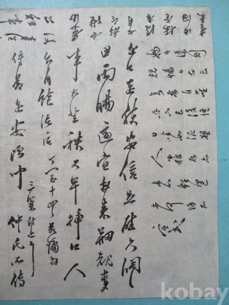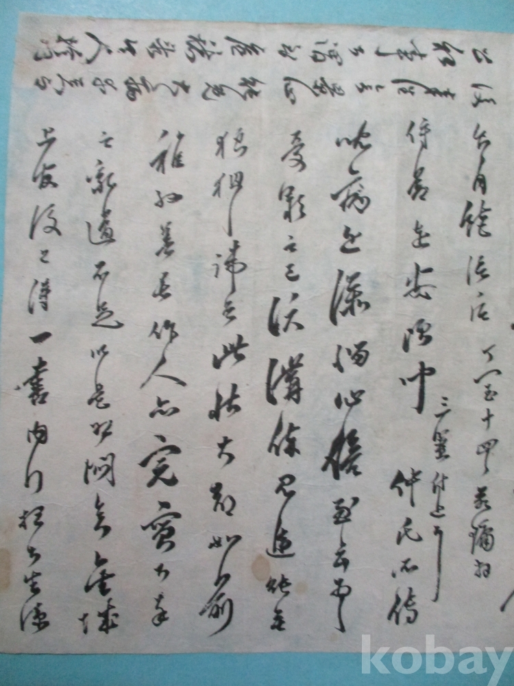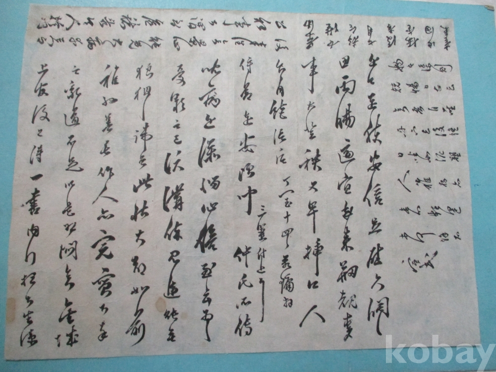 행초로 태풍이 몰아치며 휘몰아치듯 물이 흐르듯 내리갈겨 쓴 간찰