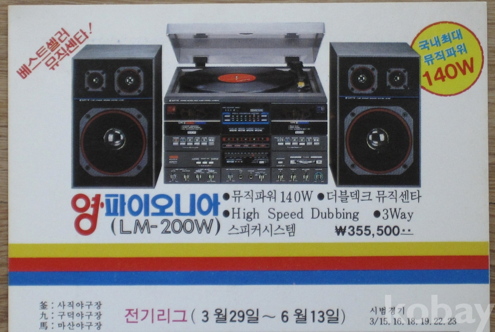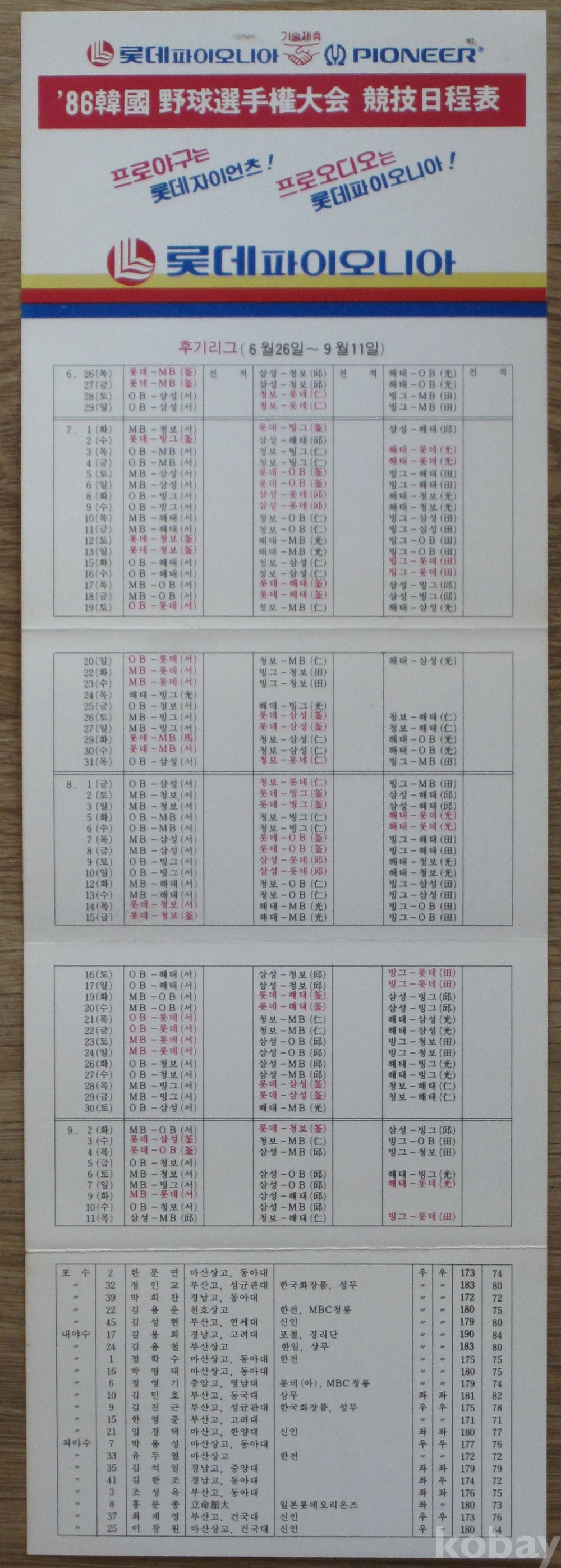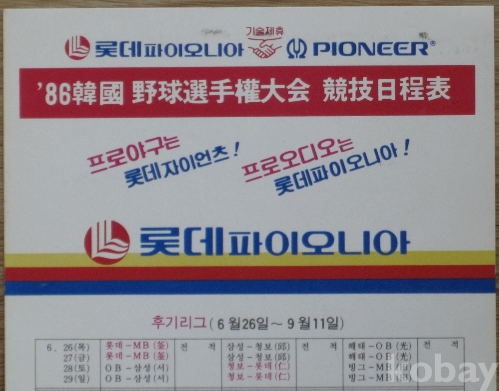 1986년 롯데 파이오니아 광고 '86 프로야구 경기 일정표