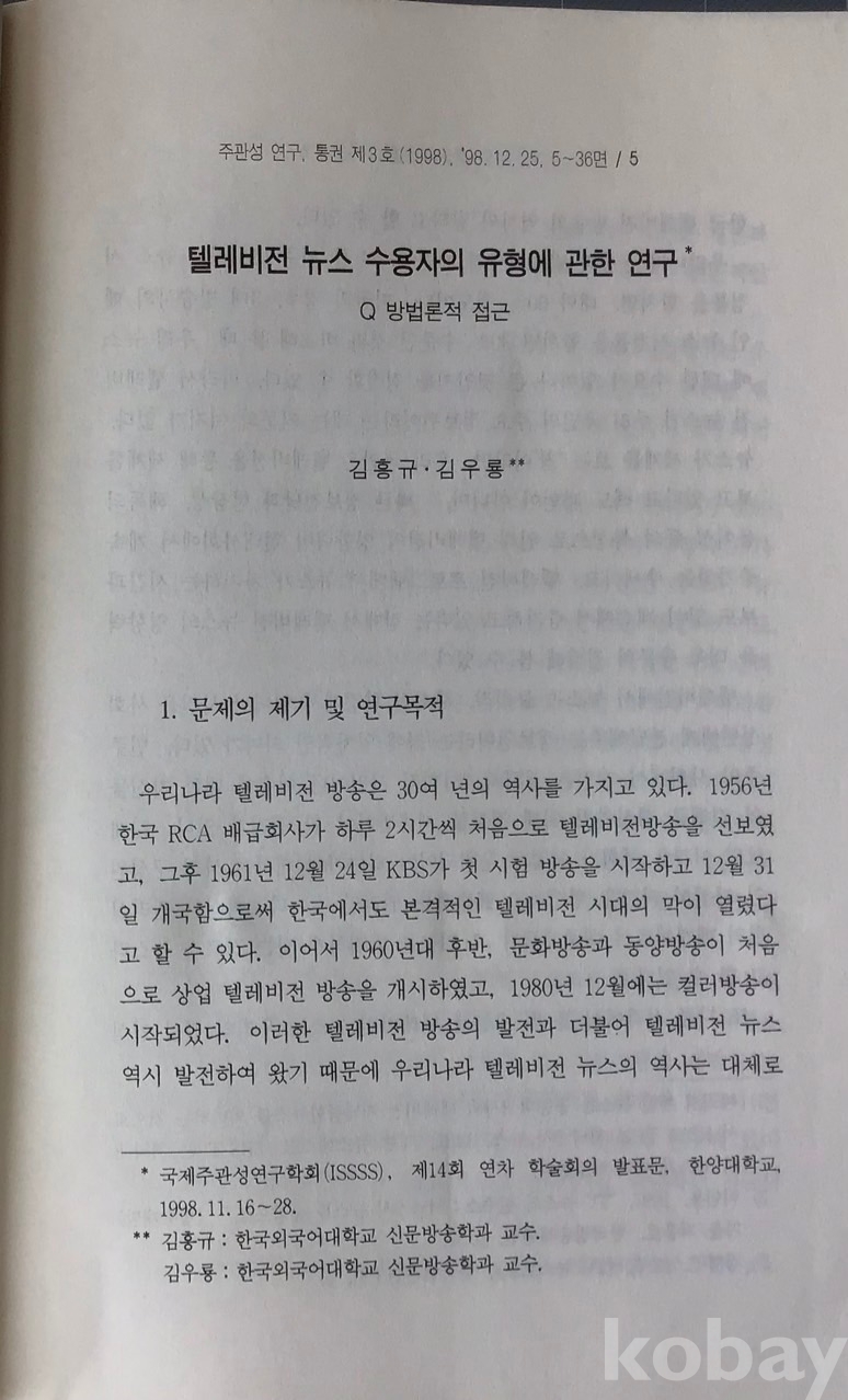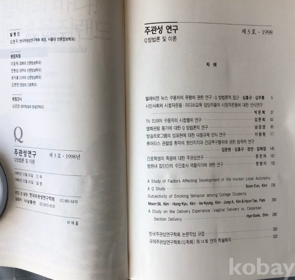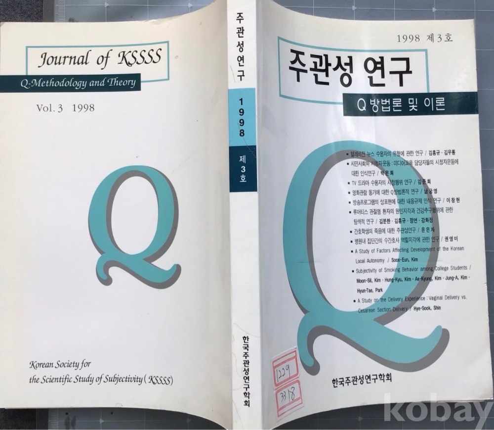 [X49] <<주관성연구>> 1998 제3호 / 한국주관성연구학회 편, 1998년 12월 25일 발행 초판