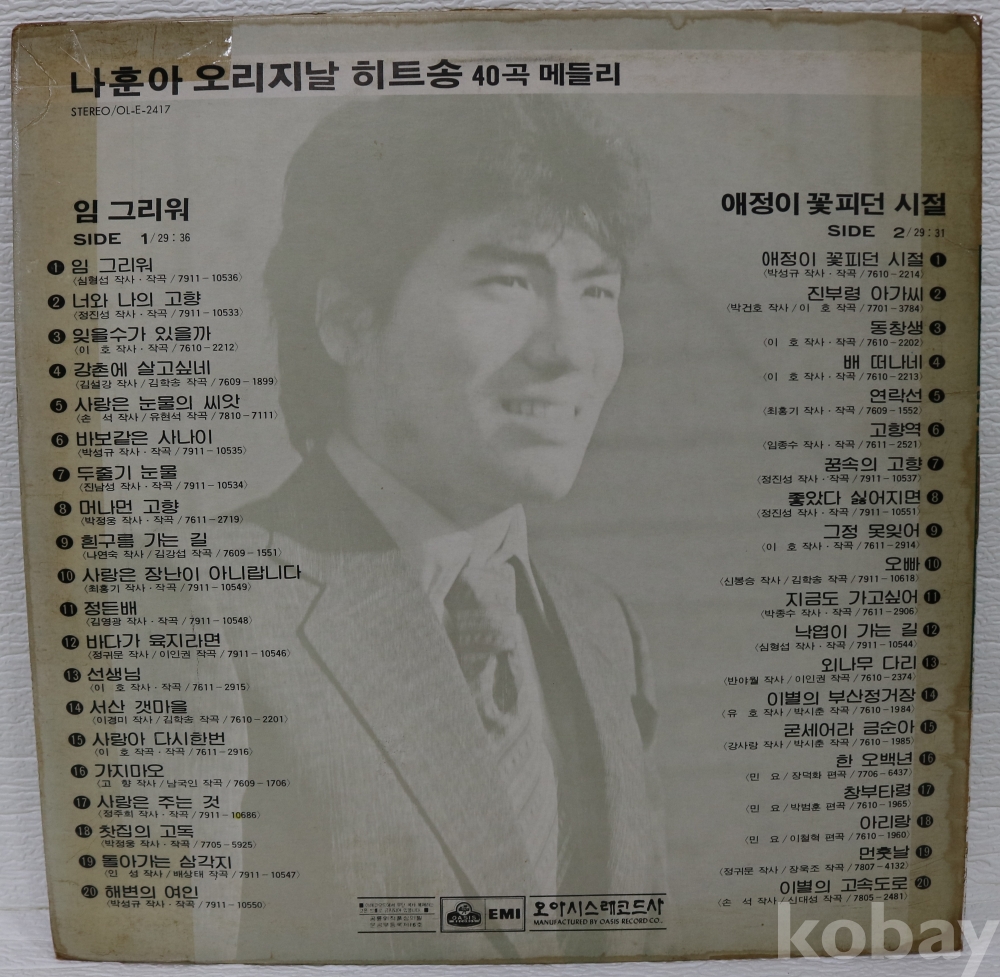 | 자켓상태 | G : 눈에 띄는 손상, 테이프, 필기 존재 | 음반상태 | EX : 재생에 영향 없는 가벼운 기스 존재 | 발매정보 | 초반 | 가사지여부 | 무 |