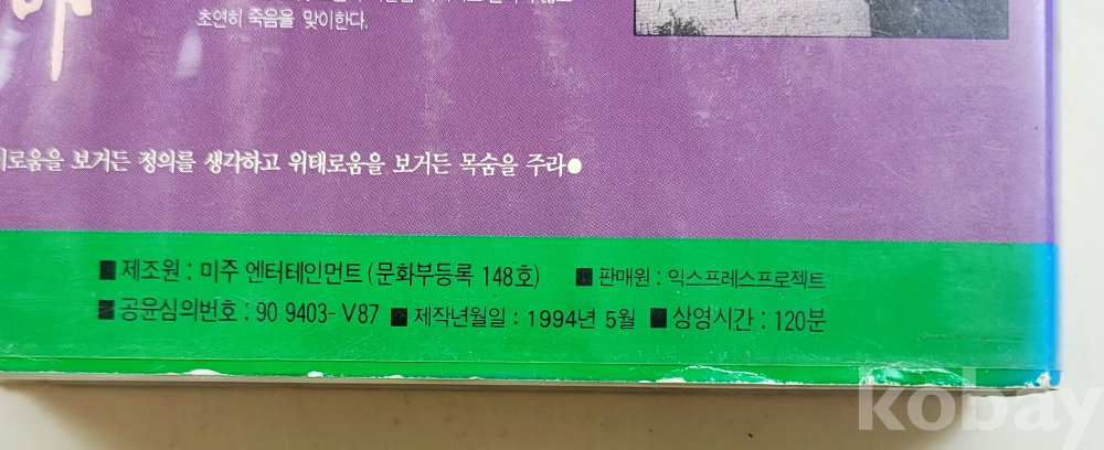 상 태 | 재생여부 확인 불가 및 재생상태 확인 안함. 간혹 보이는 비디오테이프에 발생한 곰팡이들은 세월의 흔적으로 필요하시면 관련업체에 의뢰하시어 세척을 하셔야 합니다. 단, 흰색곰팡이는 리와인드로 한번 돌려주면 제거가 가능하나 검정색곰팡이는 세척을 하여도 화면재생이 안됩니다. 그래서 각각의 비디오테이프의 오염상태를 사진으로 올리오니 보시고 참고하여 주시고 상태가 안좋은 것은 화질의 질을 떠나 비디오테이프 그 자체의 존재에 소장 의미를 부여하시는 분들만 입찰하여 주시길 권유합니다. 부득이 반품신청시 사전에 판매자에게 미리 연락주시기 바랍니다. 비디오테이프는 재생하는 기계의 상태에 따라 화질이 다를 수 있는 등 분쟁의 소지가 많은 품목입니다. 사전 연락없이 반품신청시에는 입찰제한자로 등록하겠습니다. 훼손 및 오염 정도(강,중,약,양호로 표시합니다.) - 케이스 & 삽지 : 약 / 라벨 : 양호 / 테이프 : 양호 / 곰팡이 : 양호 |