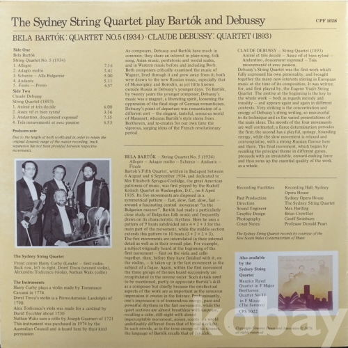 Béla Bartók, Claude Debussy - The Sydney String Quartet Play Bartók And Debussy