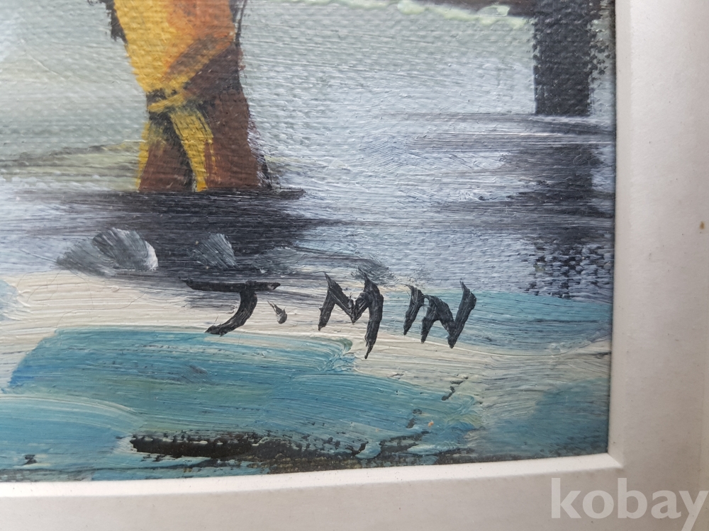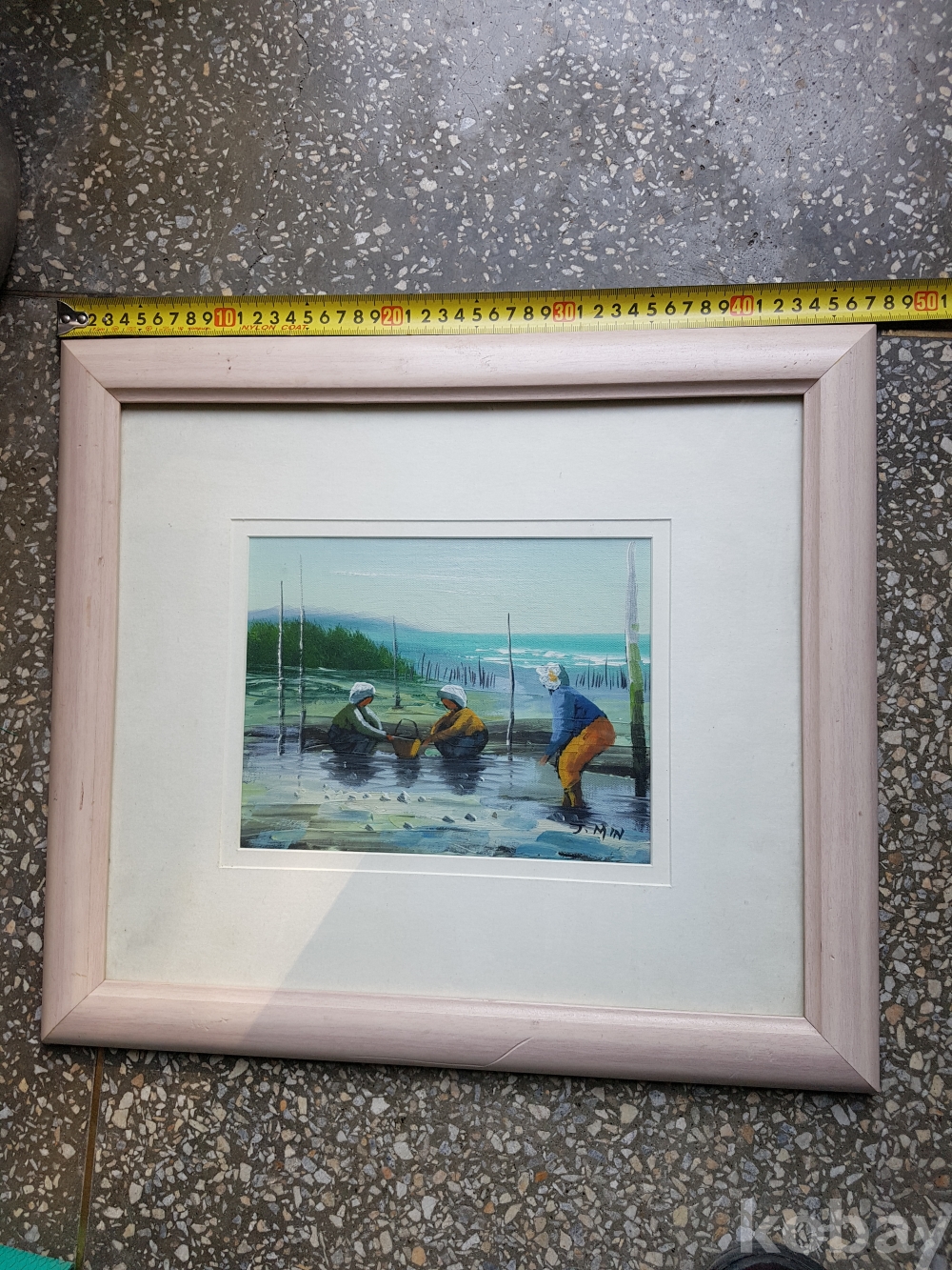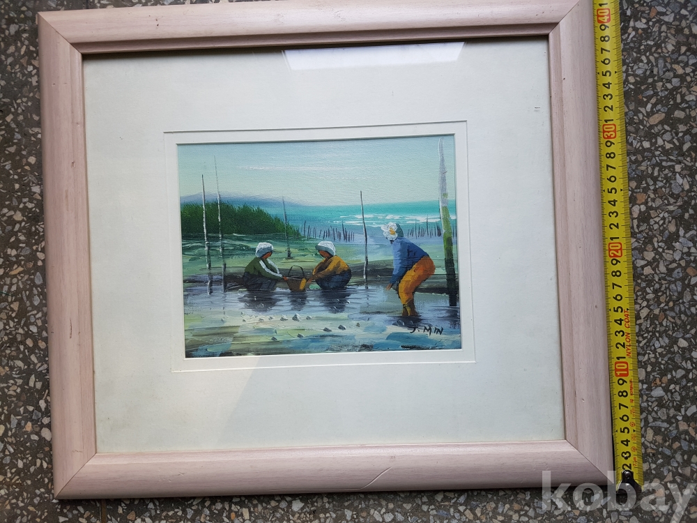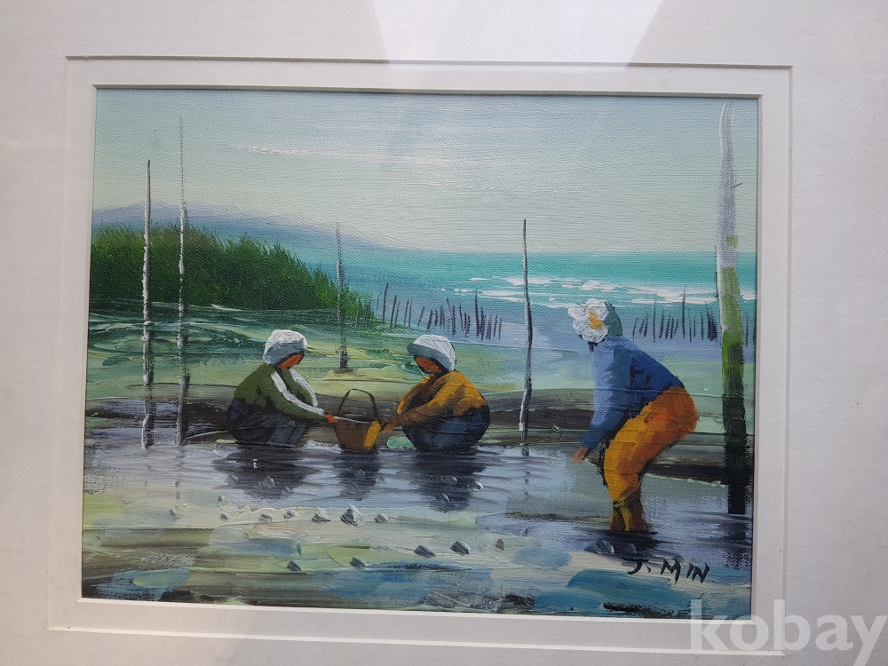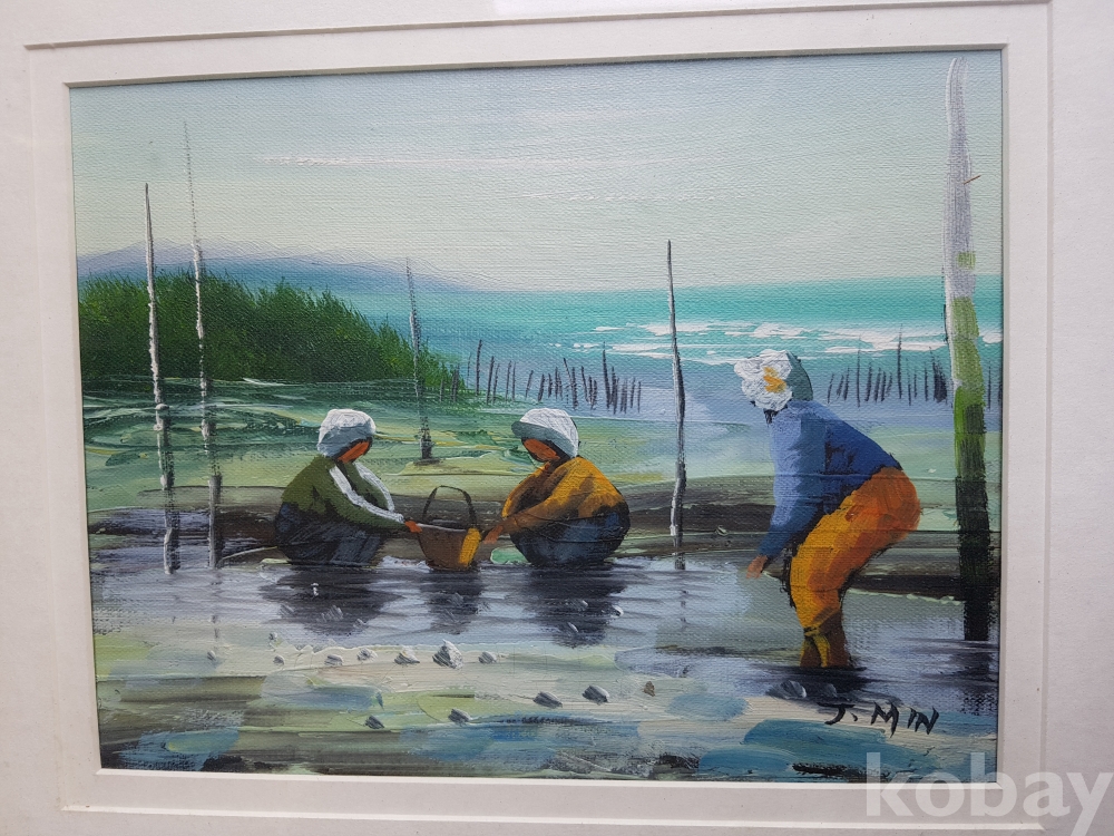바닷가에서 조개를 줍는 여인들 유화 1점