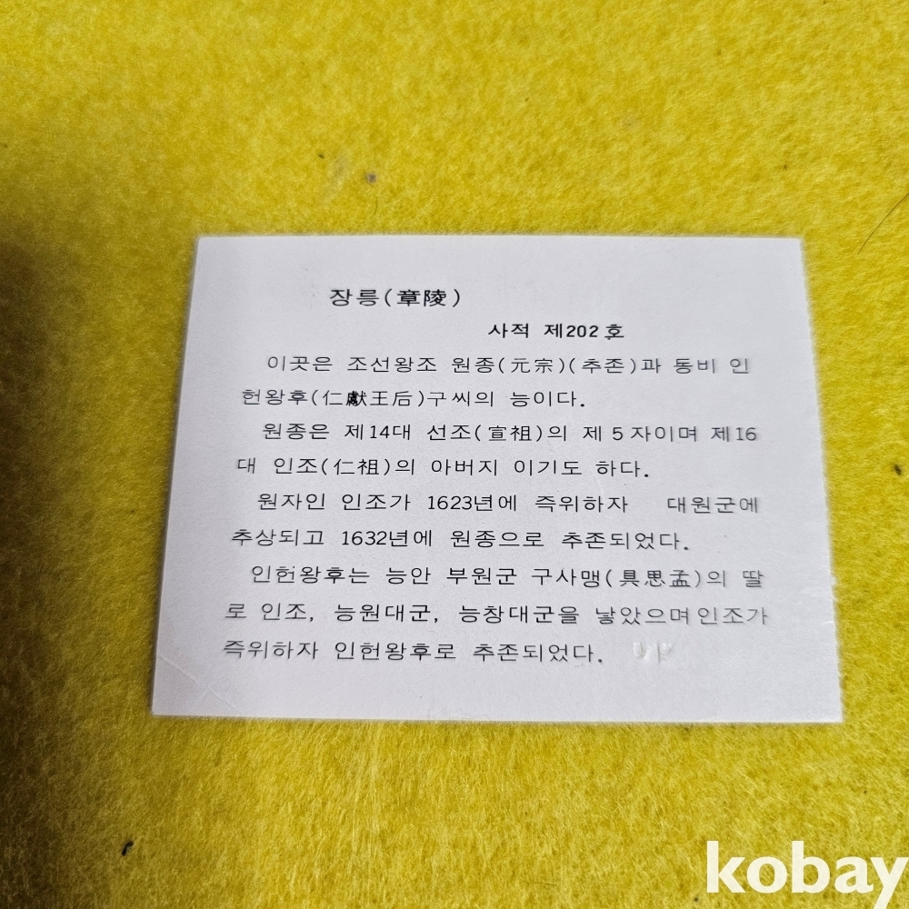 (y)(((근현대사자료/입장권/관람권))) 오래전 사적 제202호 장릉 입장권