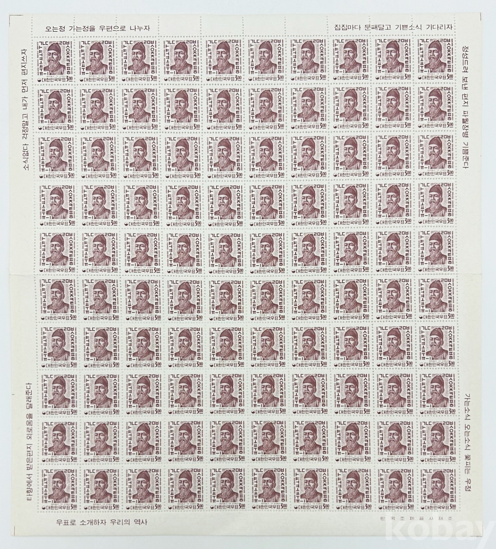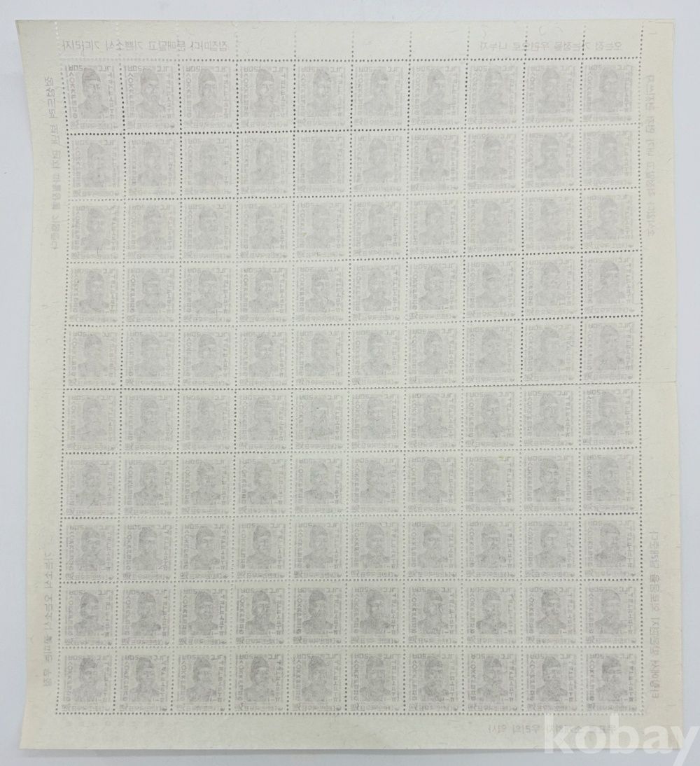 상품명 | (미사용) 제2차 국산백지 보통 세종대왕 우표 100매 전지 | ||