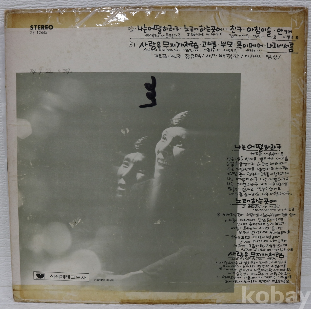 | 자켓상태 | G : 눈에 띄는 손상, 테이프, 필기 존재 | 음반상태 | VG : 생활 기스 다수, 가벼운 노이즈 존재 | 발매정보 | 초반 | 가사지여부 | 유 |