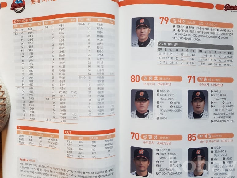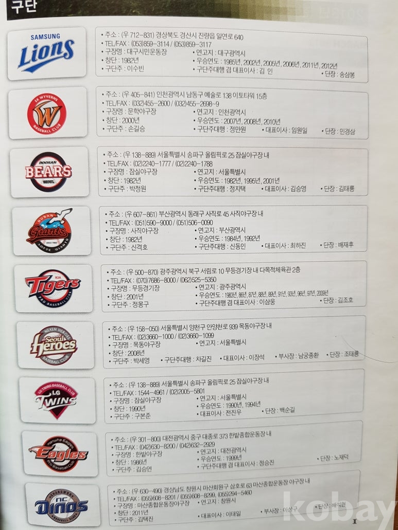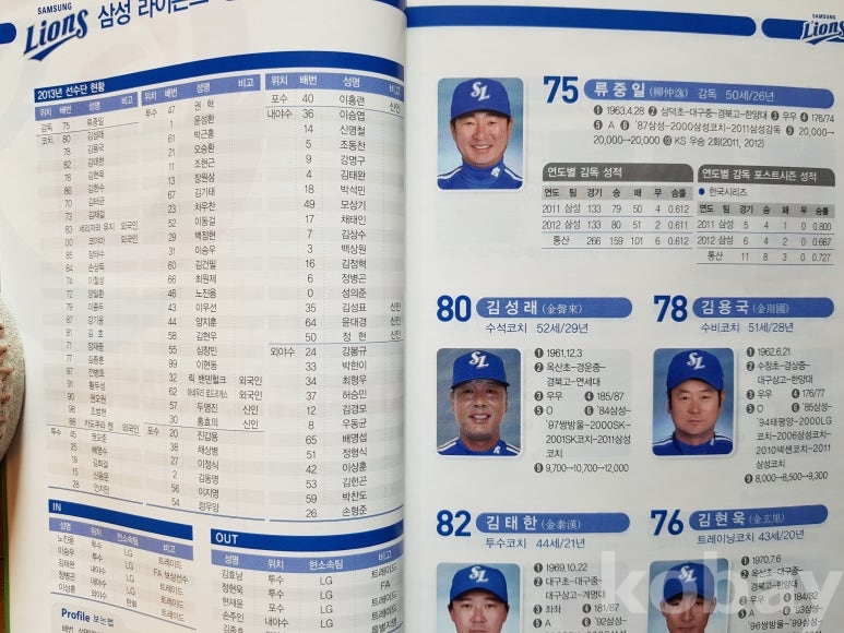설명: 이 책의 오피셜 가이드북으로 속 내용에는 전 구단 선수 성명. 생년원일. 국적. 배번. 위치. 출신교. 투타. 신장/체중. 혈액형. 입단년도. 계약금. 년봉 등 등 기록 제공된 책입니다.