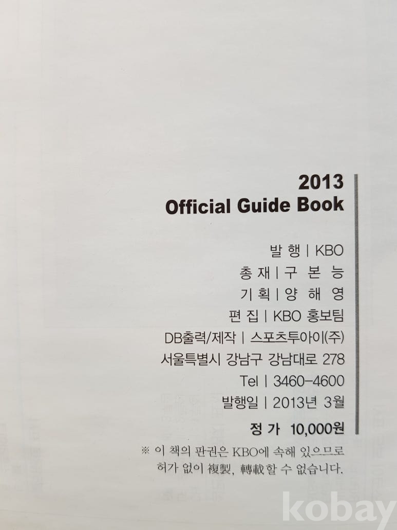 제목: 2013년 KBO OFFICIAL GUIDE BOOK 판매