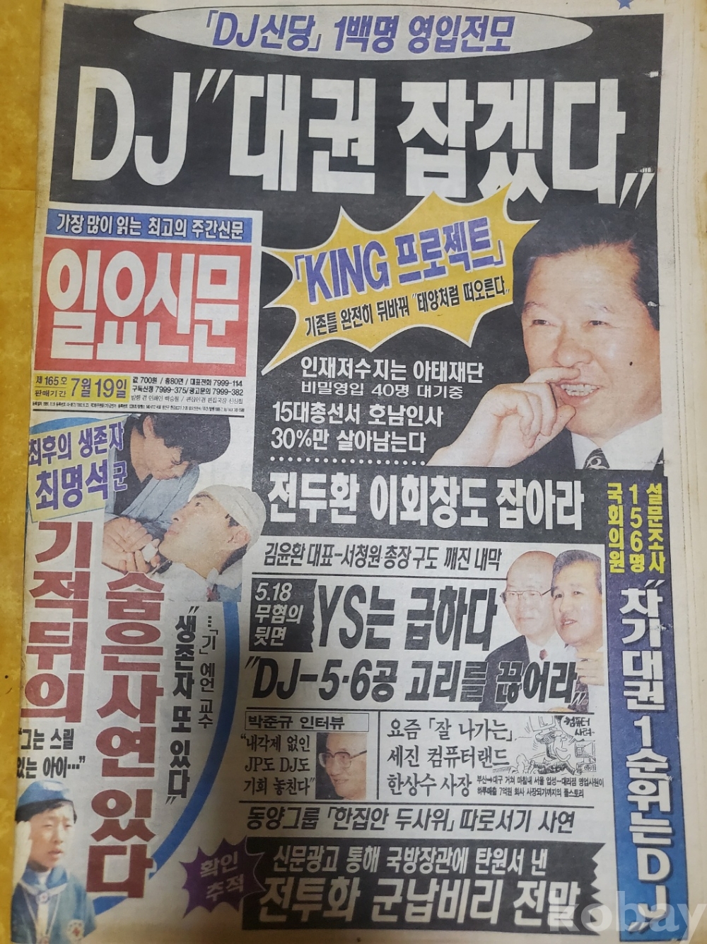 1. 일요신문 제165호(1995년 7월 16일), 일요신문사, 80쪽, 상태 상, 사진 참조