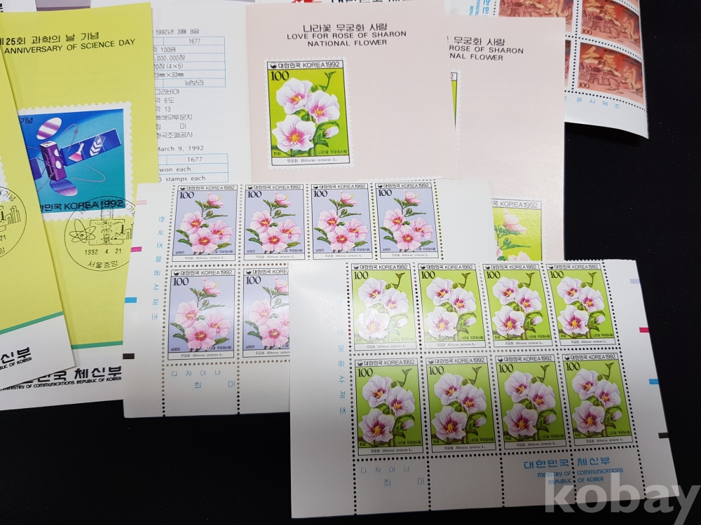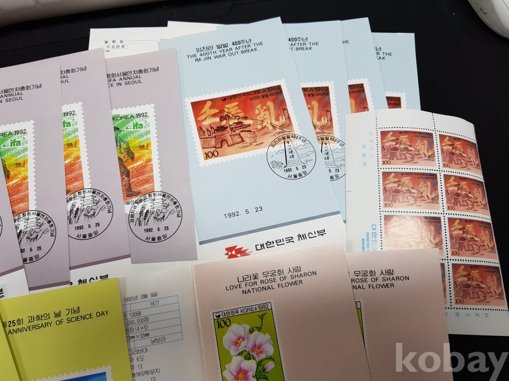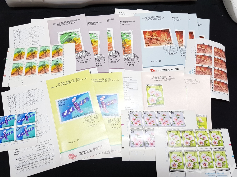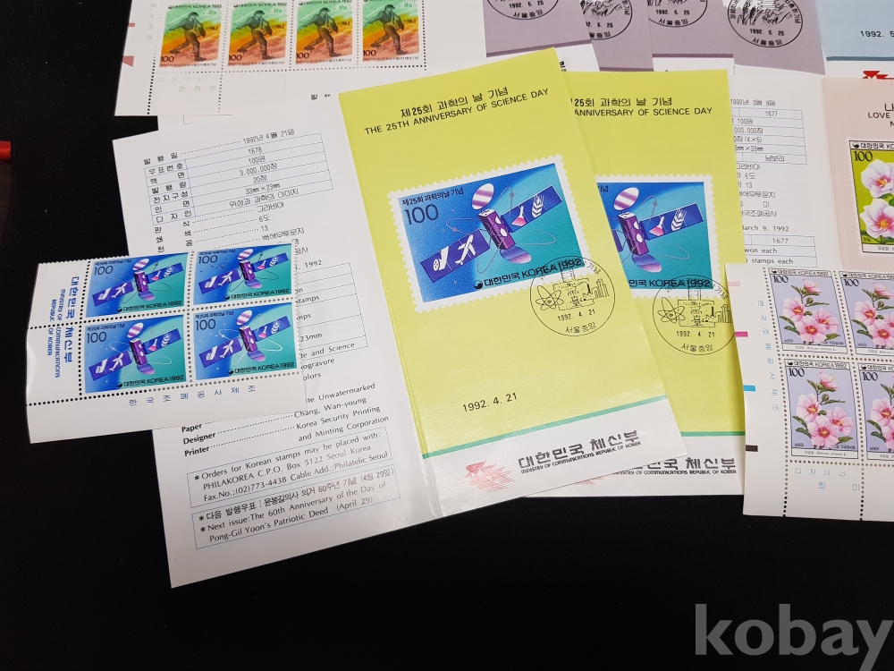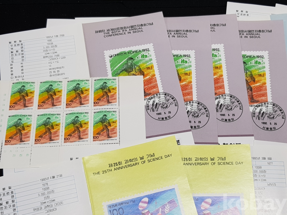 - 1992년 기념우표 시트, 명판, 안내카드 등 모음