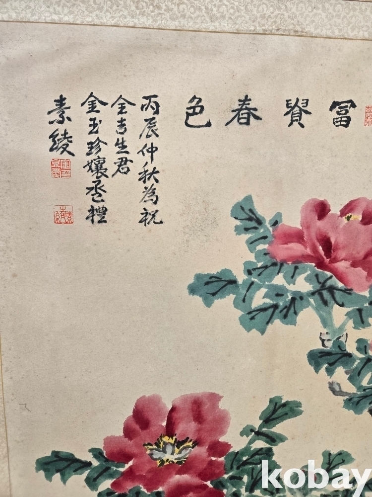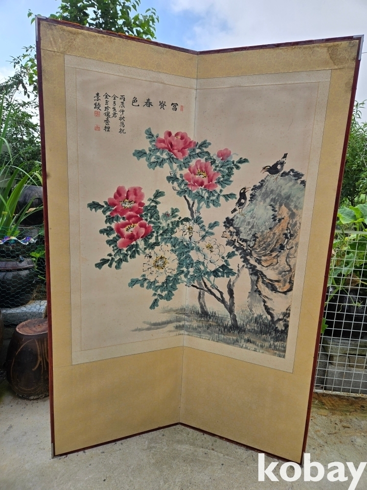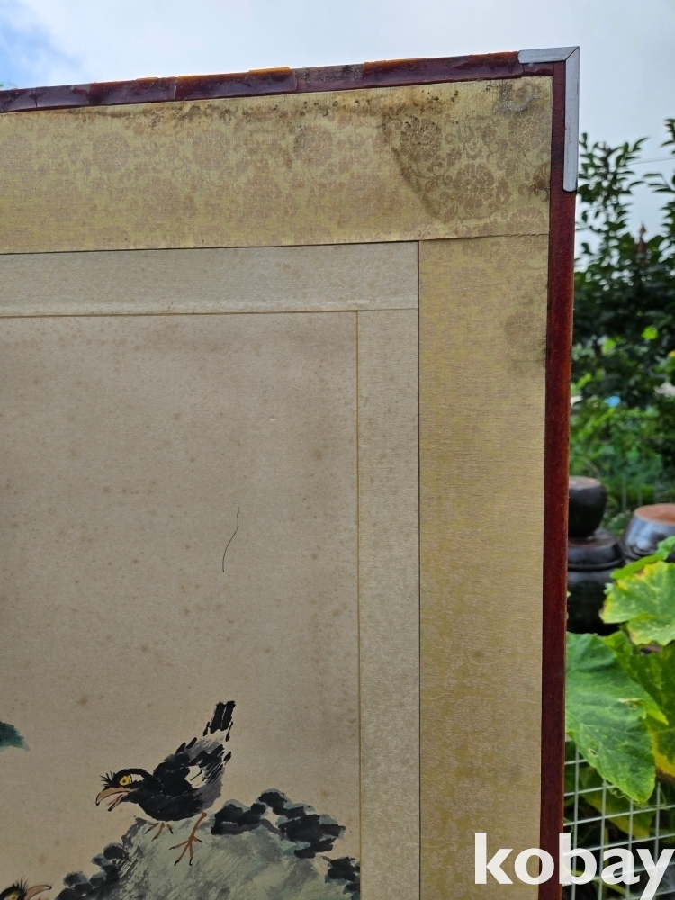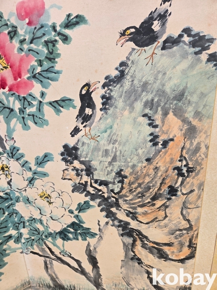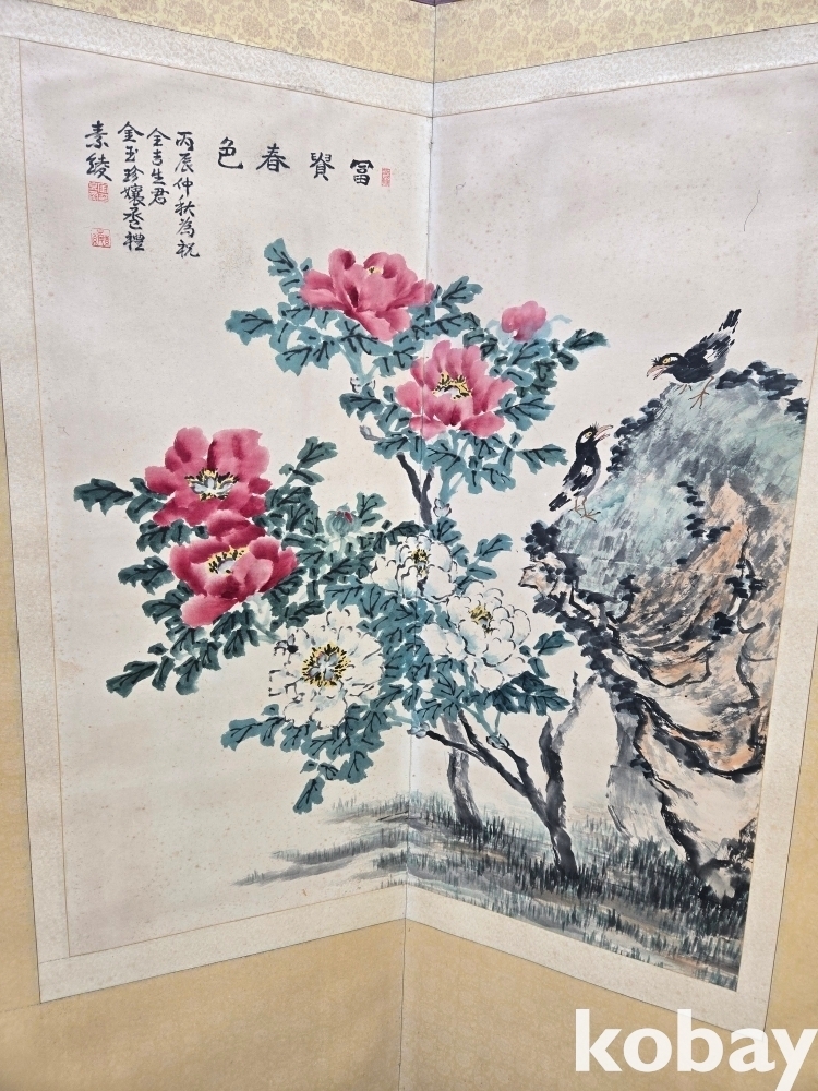 새와 꽃 표현 그림 2폭 가리개 입니다.