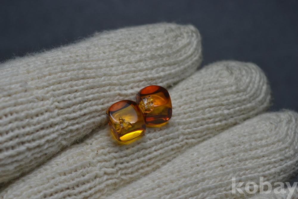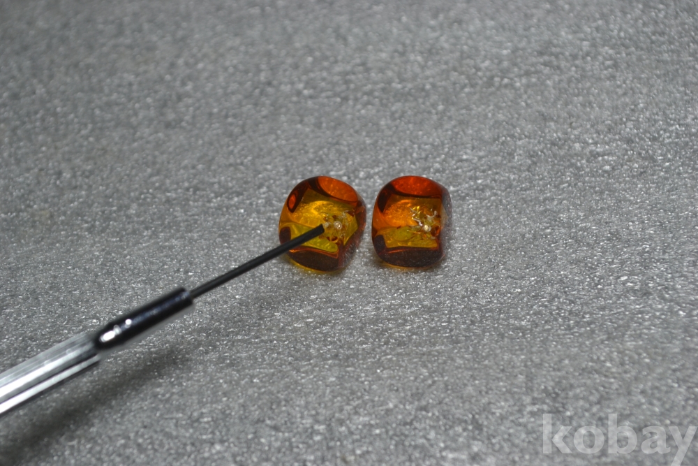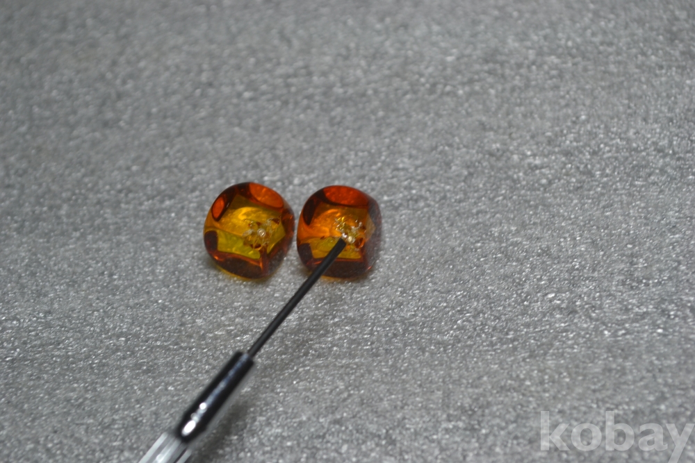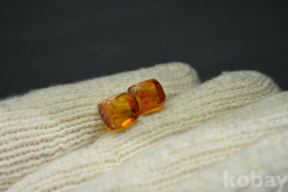 호박보석알 정사각형 지름 : 7 mm X 7 mm 급 (초소형 지름) / 2점 한쌍~