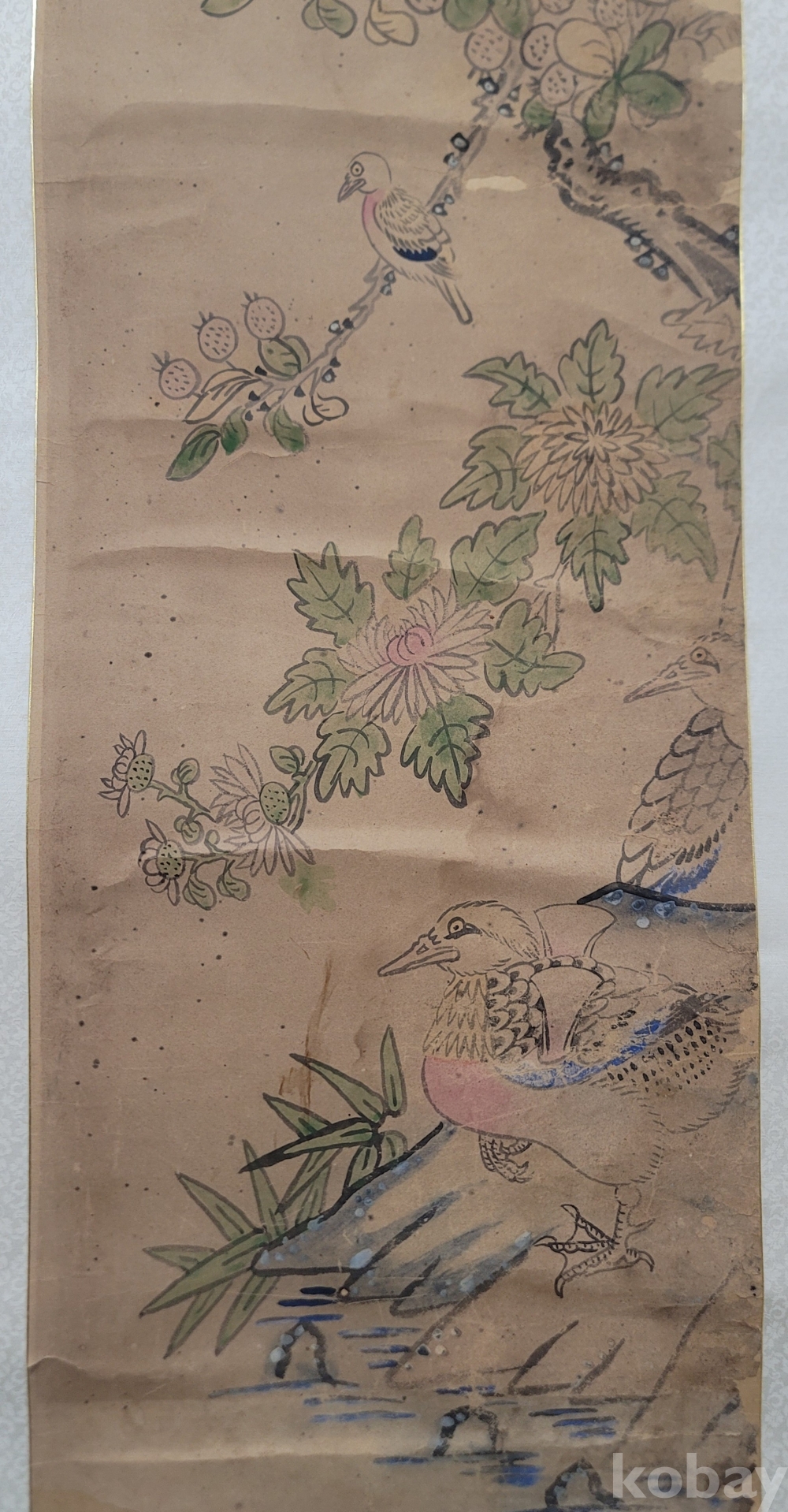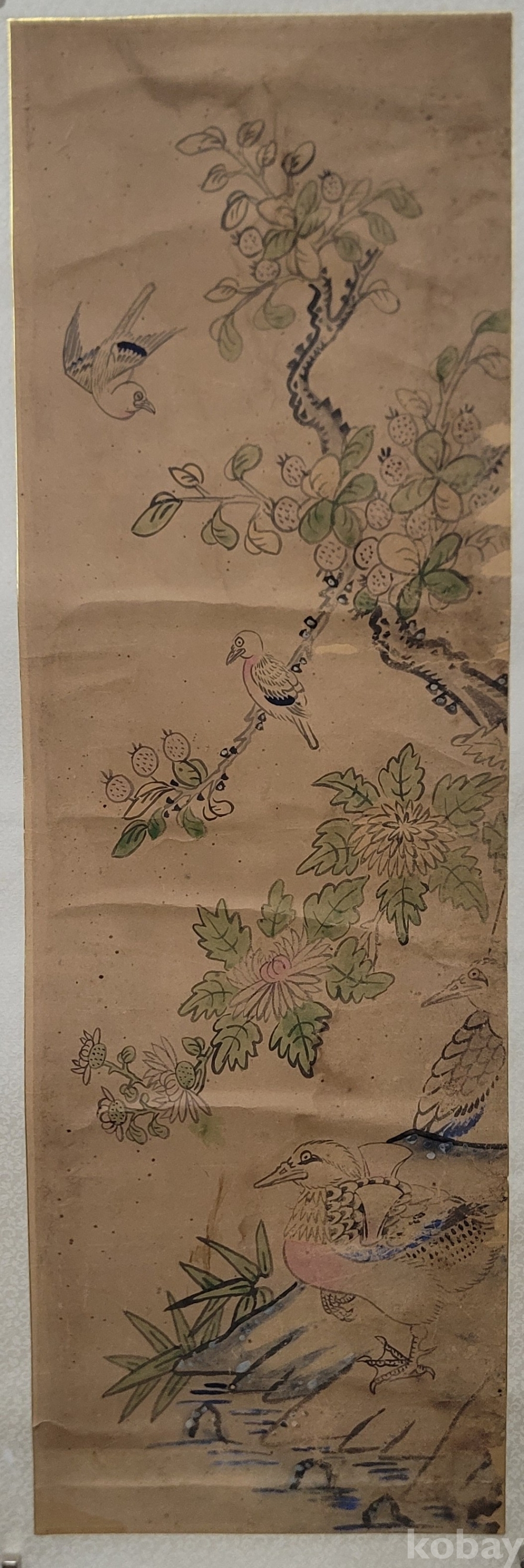 두 마리의 오리와 국화를 그렸다.
