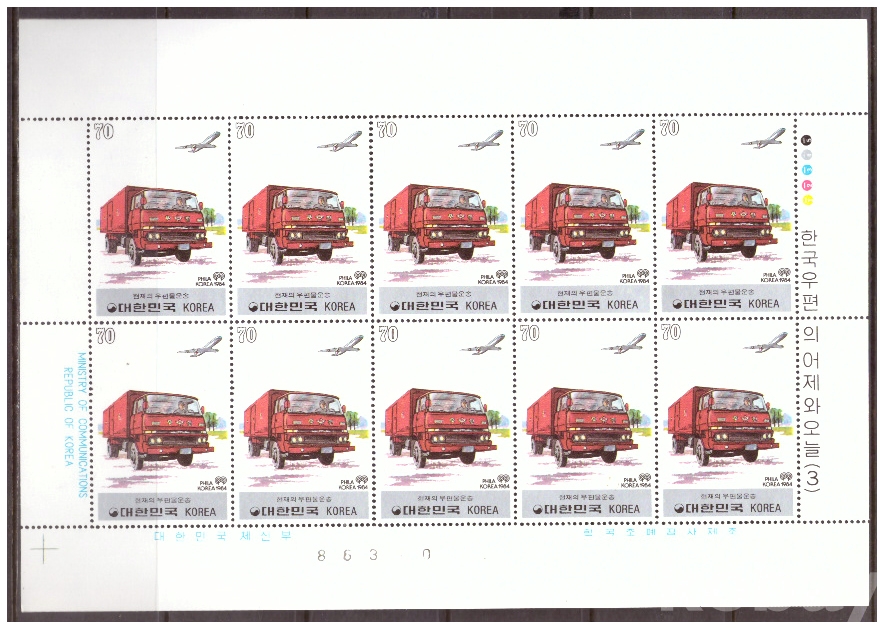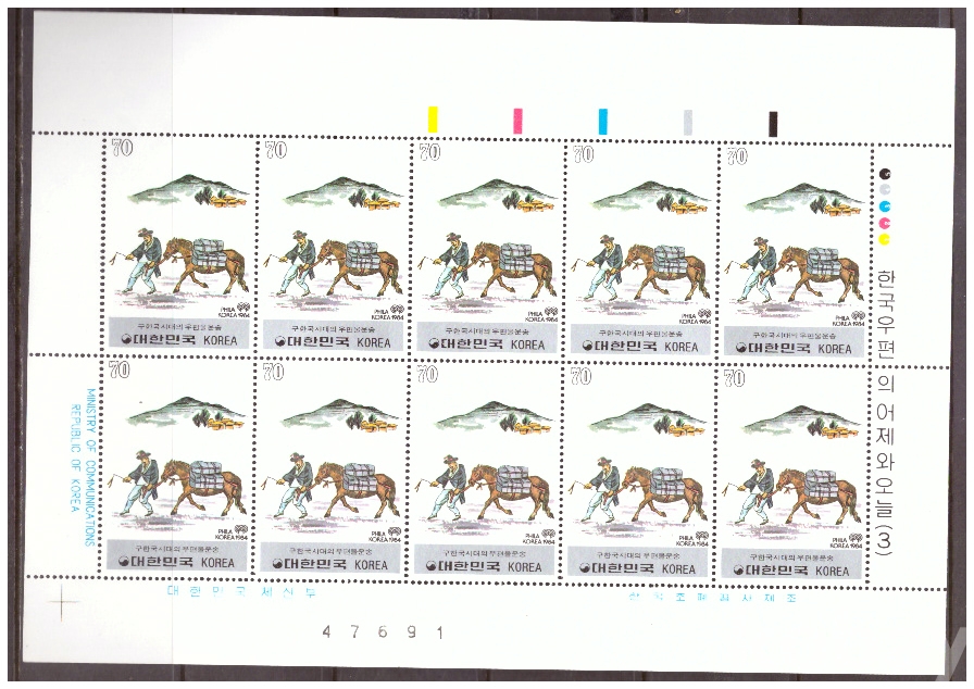 (한국전지) 1983.8.10 한국우편의 어제와 오늘(제3집) 2완 sheet of 10 MNH