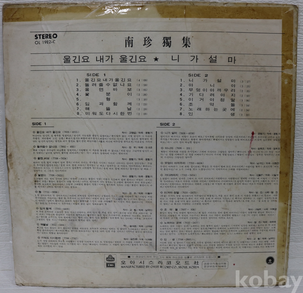 | 자켓상태 | G : 눈에 띄는 손상, 테이프, 필기 존재 | 음반상태 | G : 눈에 띄는 스크래치, 튐 또는 노이즈 발생 | 발매정보 | 초반 | 가사지여부 | 유 |