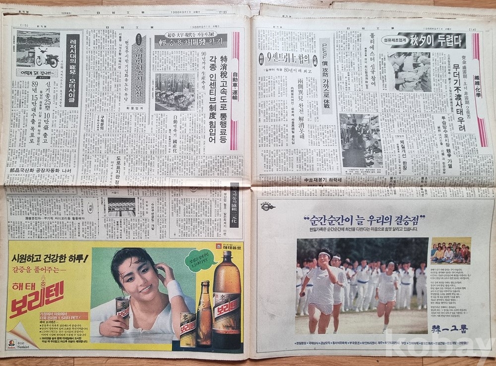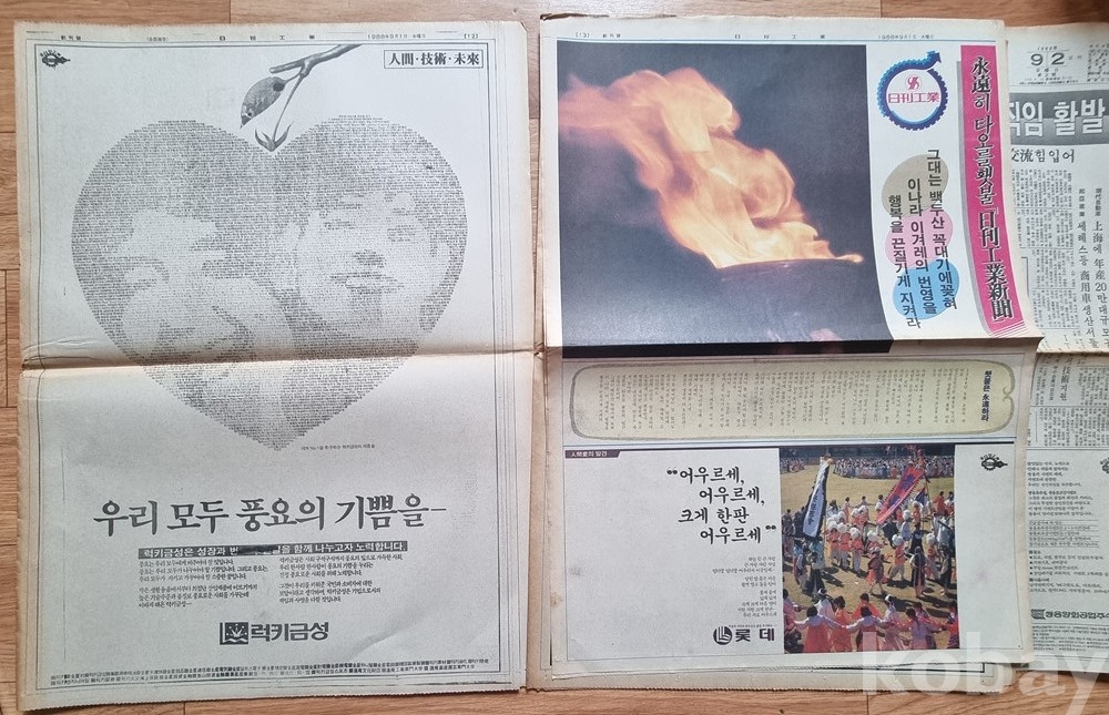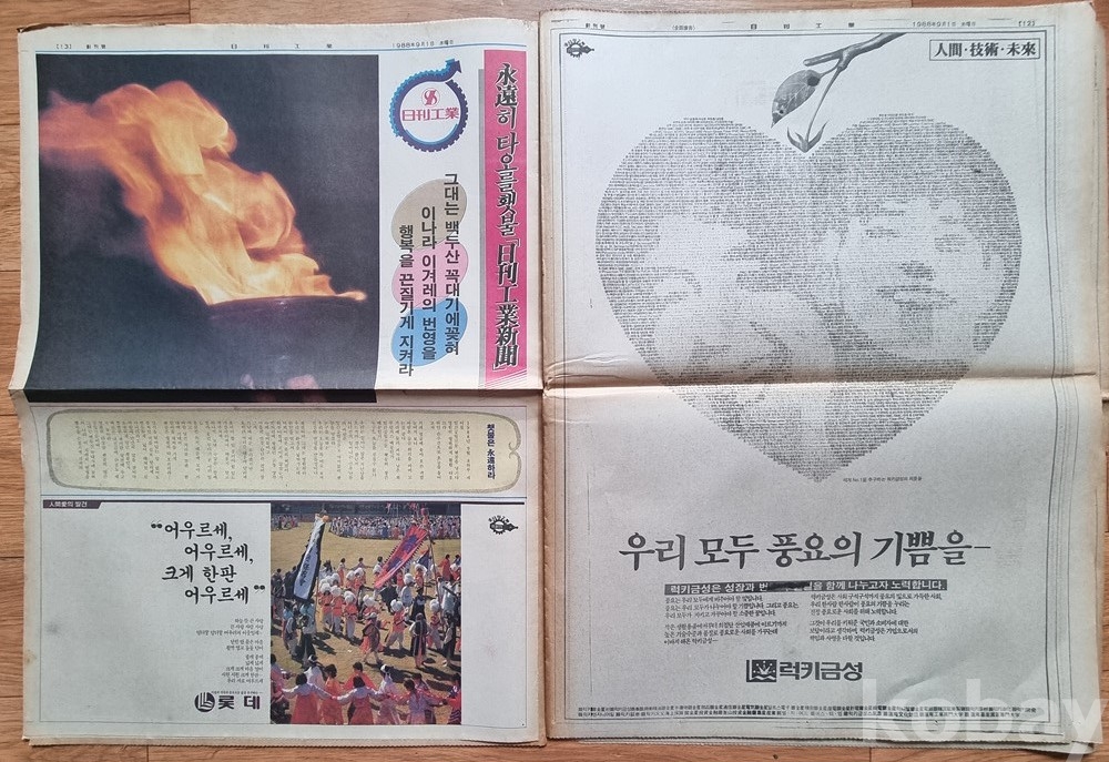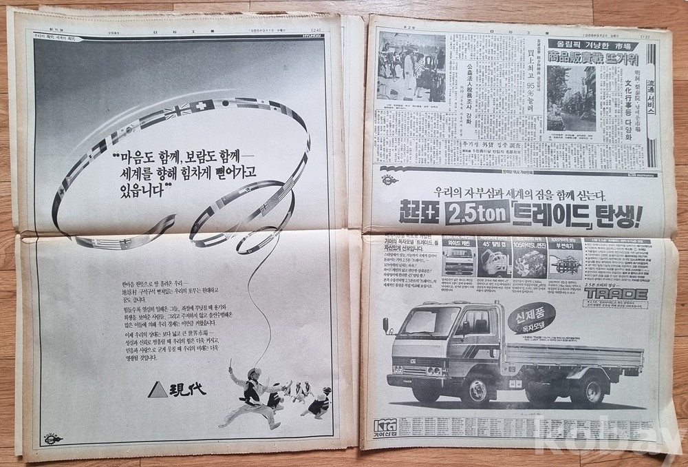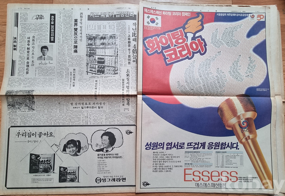 올림픽 열기: '화이팅 코리아' 캠페인 등 올림픽 공식 후원사들의 전면 광고가 다수 포함되어 시대적 감성이 탁월함.