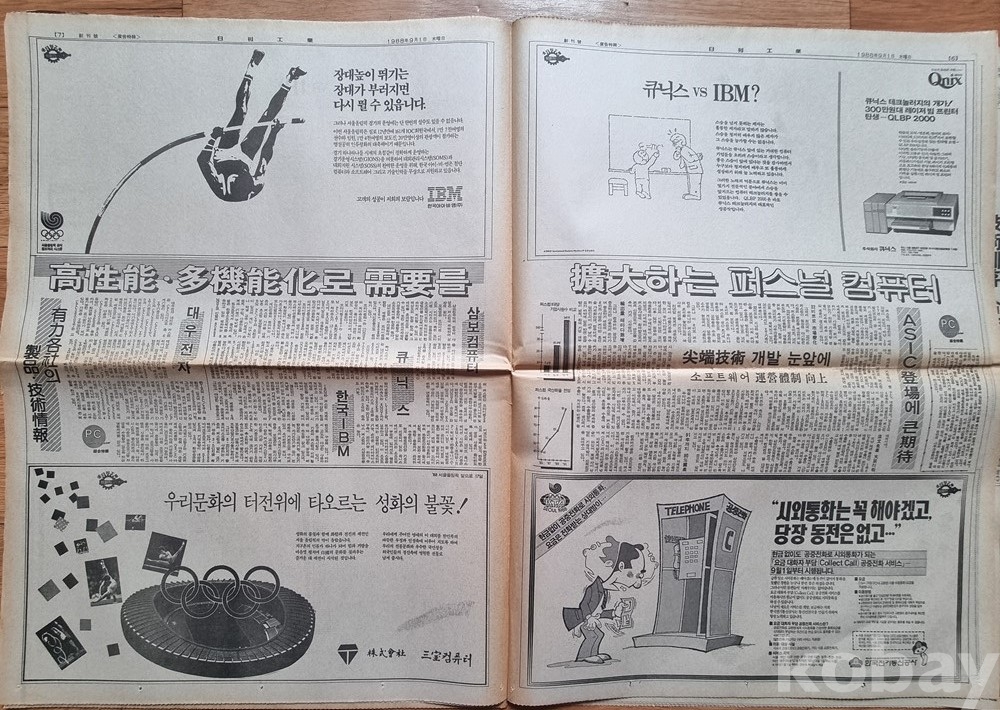 컴퓨터 태동기: '큐닉스 vs IBM' 등 초기 퍼스널 컴퓨터 시장의 경쟁 구도를 보여주는 희귀 IT 광고 수록.