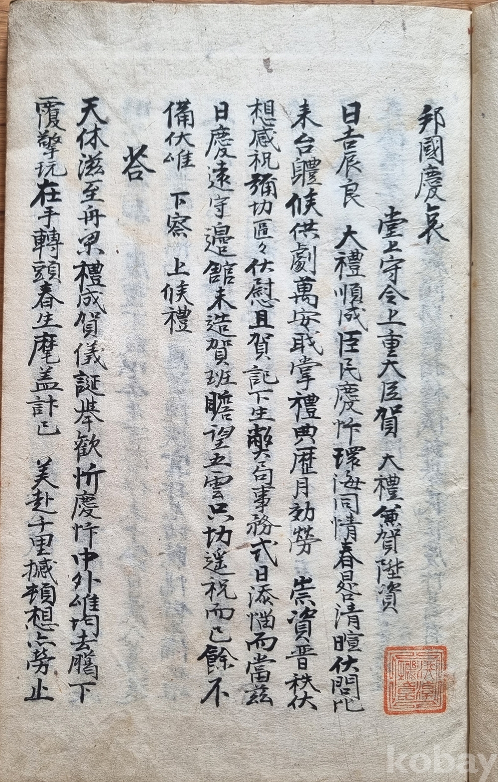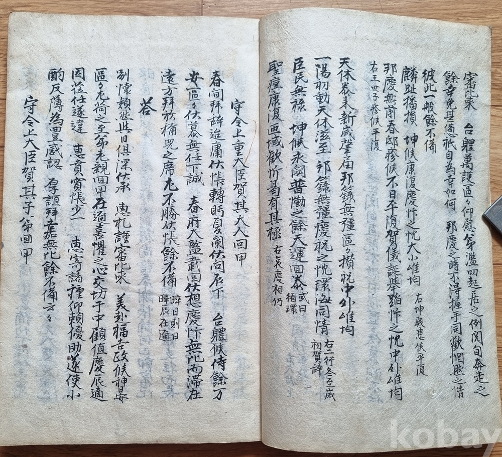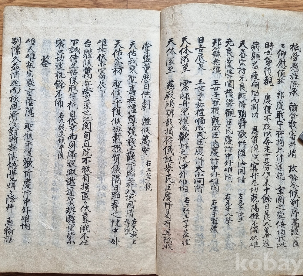 나라의 경조사에 관한 하례와 위로의 글을 모은 필사본 고서입니다.