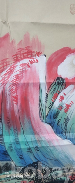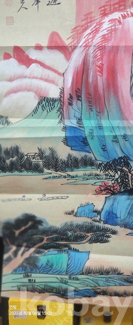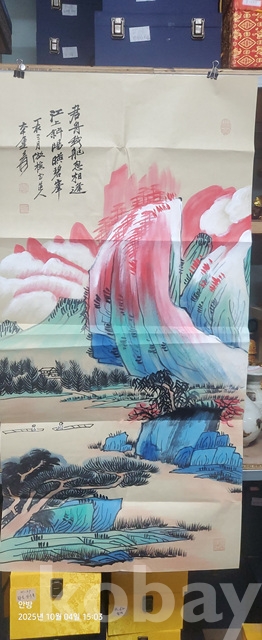 h-95.중국유명화가 장대천의산수도(실체그린그림미감정)