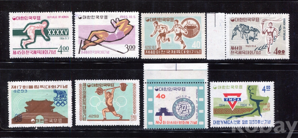 - [우표] 1960년대 미사용 기념우표 8종 모음 1 (All MNH : Mint Not Hinged : 뒷면 힌지자국없이 깨끗한 상태))