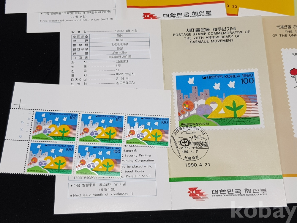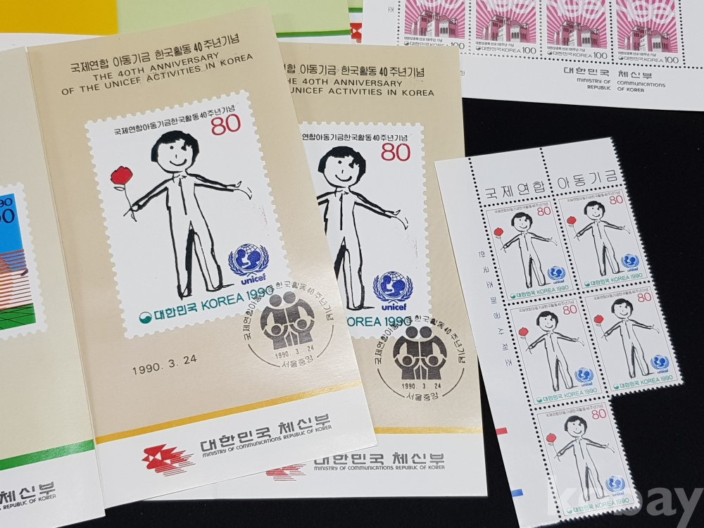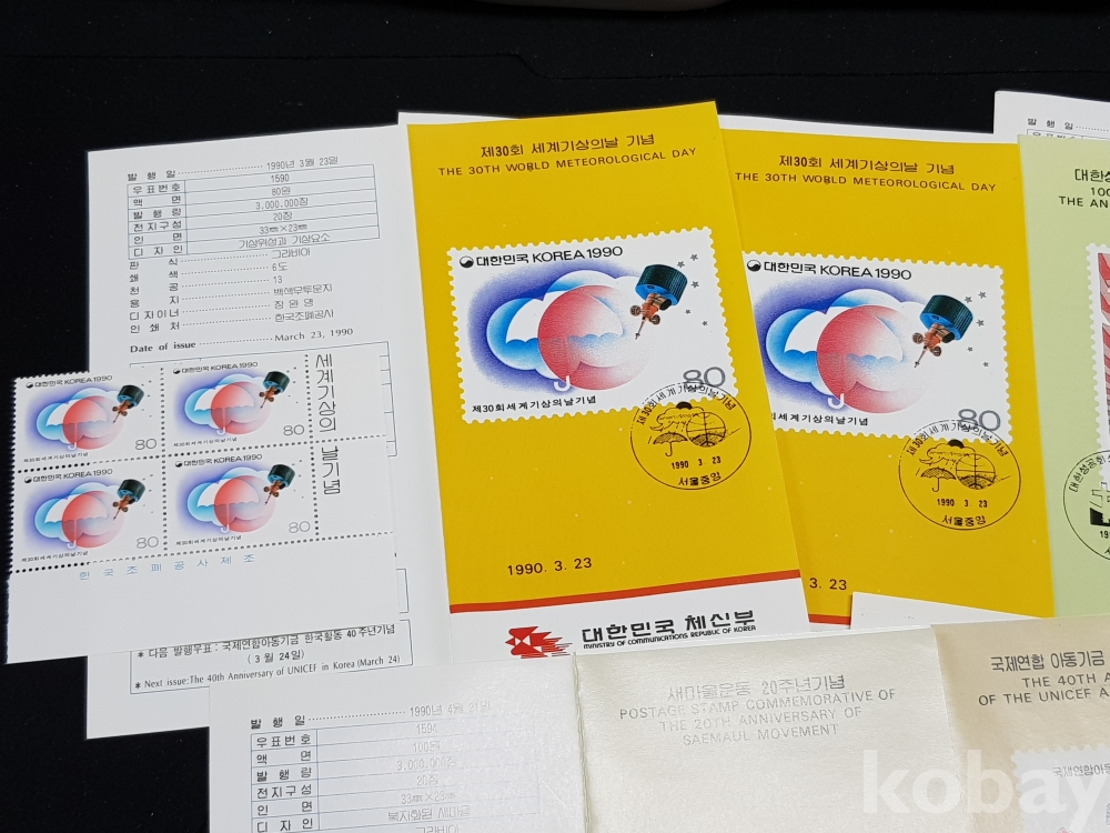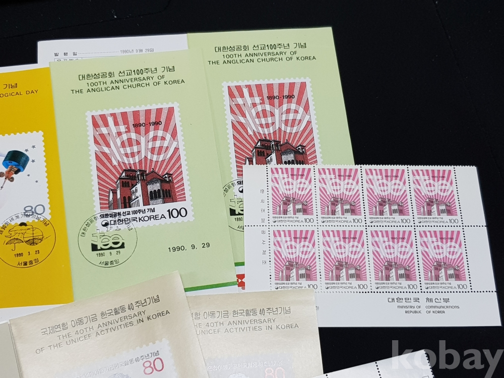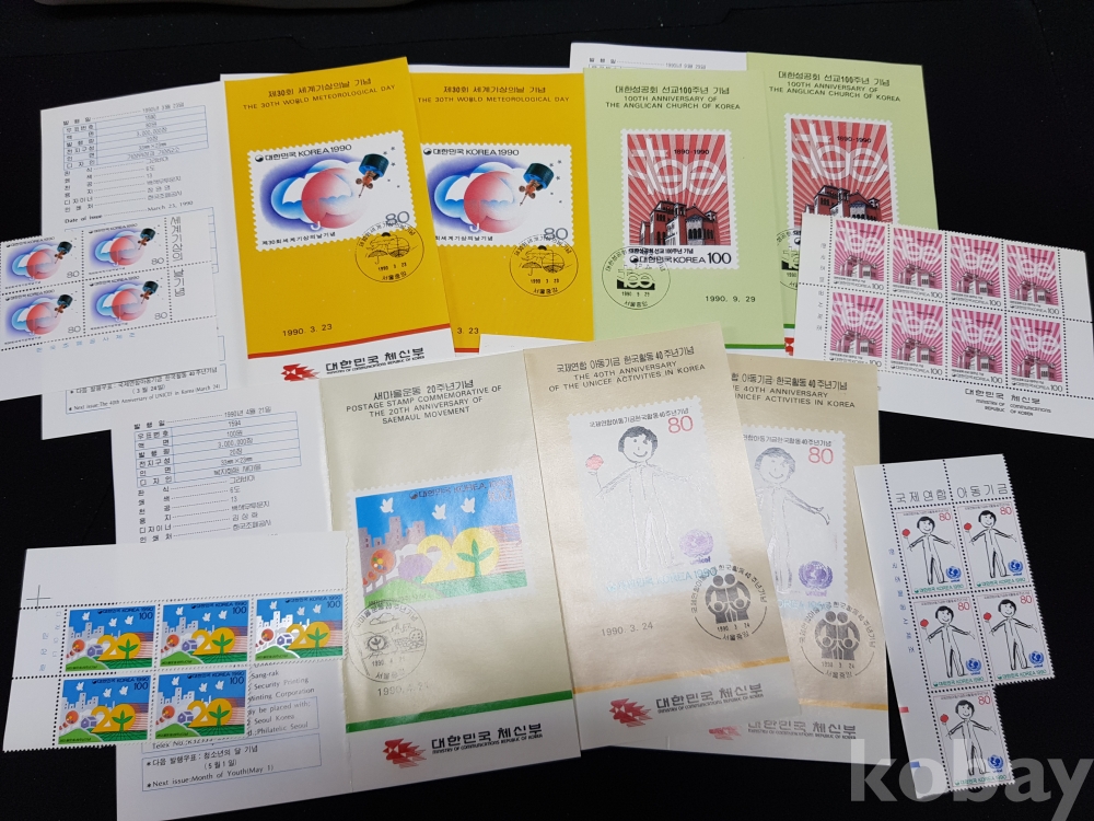 - 1990년 기념우표 시트, 명판, 안내카드 등 모음