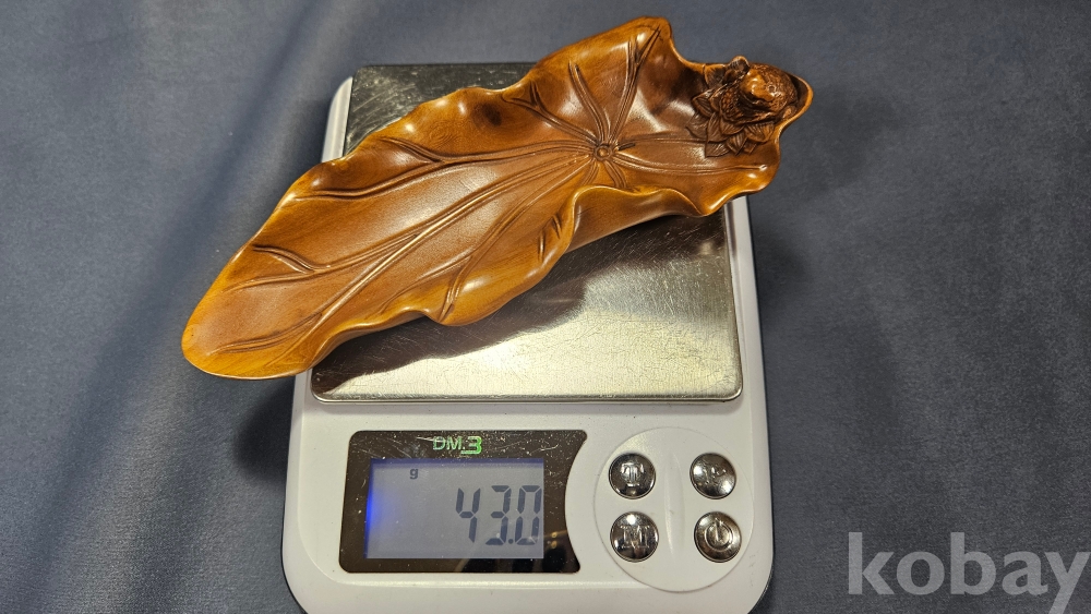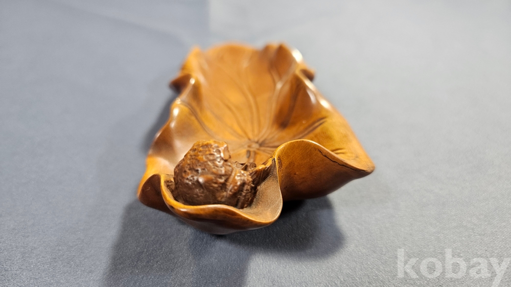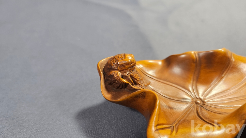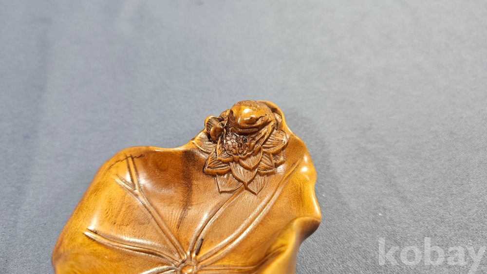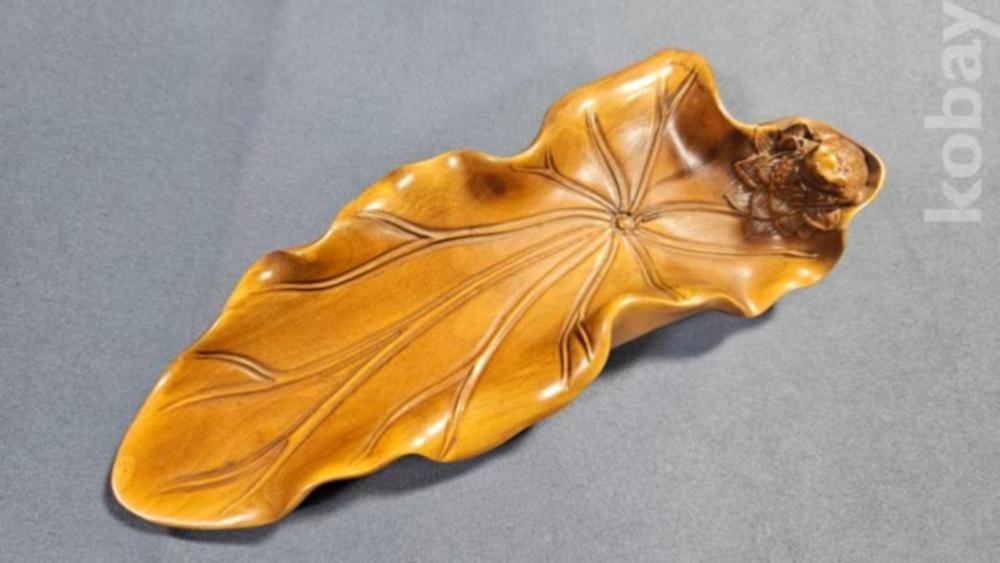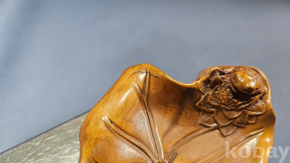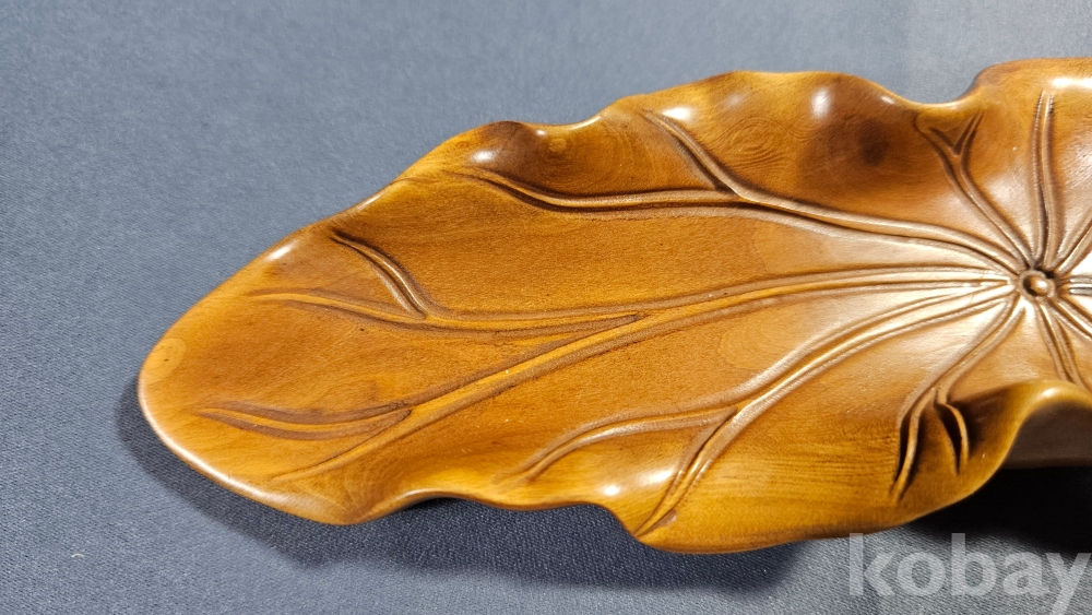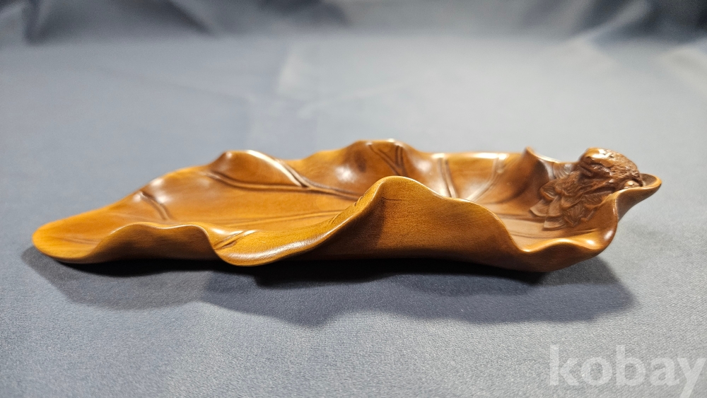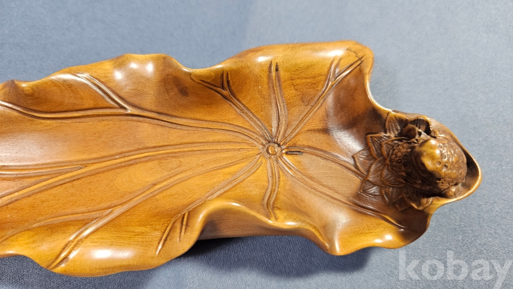 연잎형태로 조각되어 있는 나무재질 차도구 입니다.