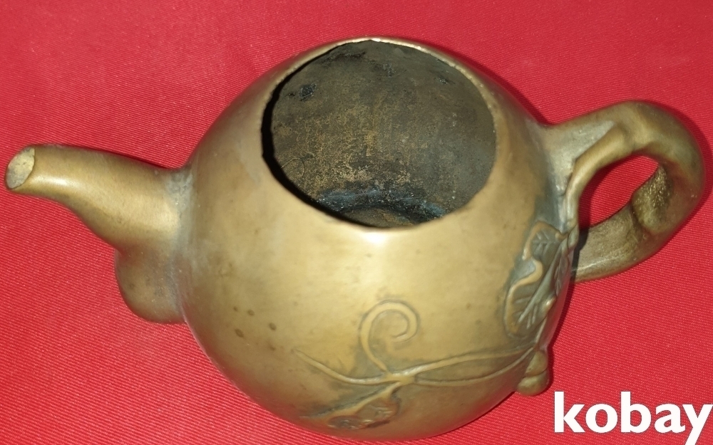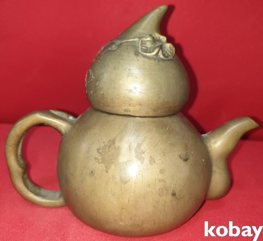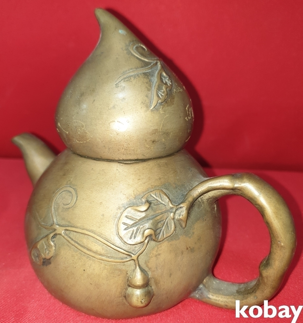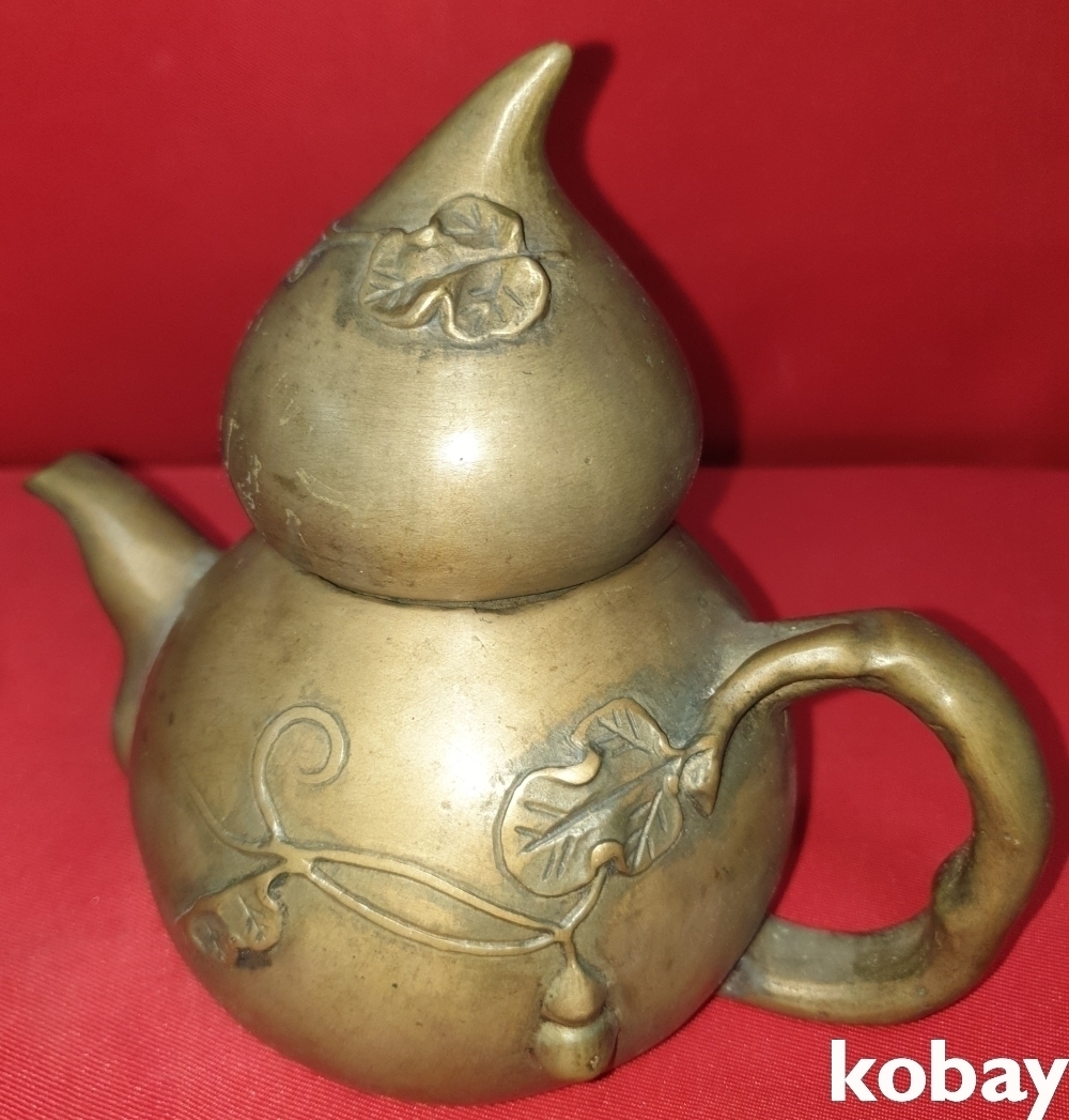황동 호리형 조롱박 문양 주전자입니다,